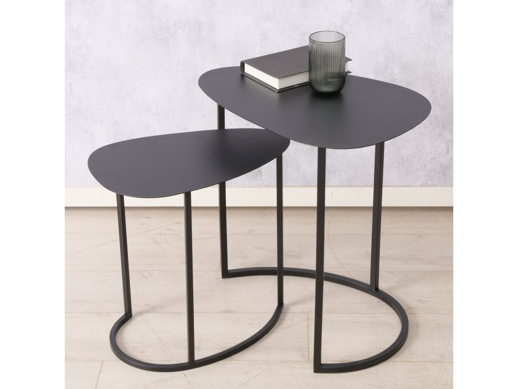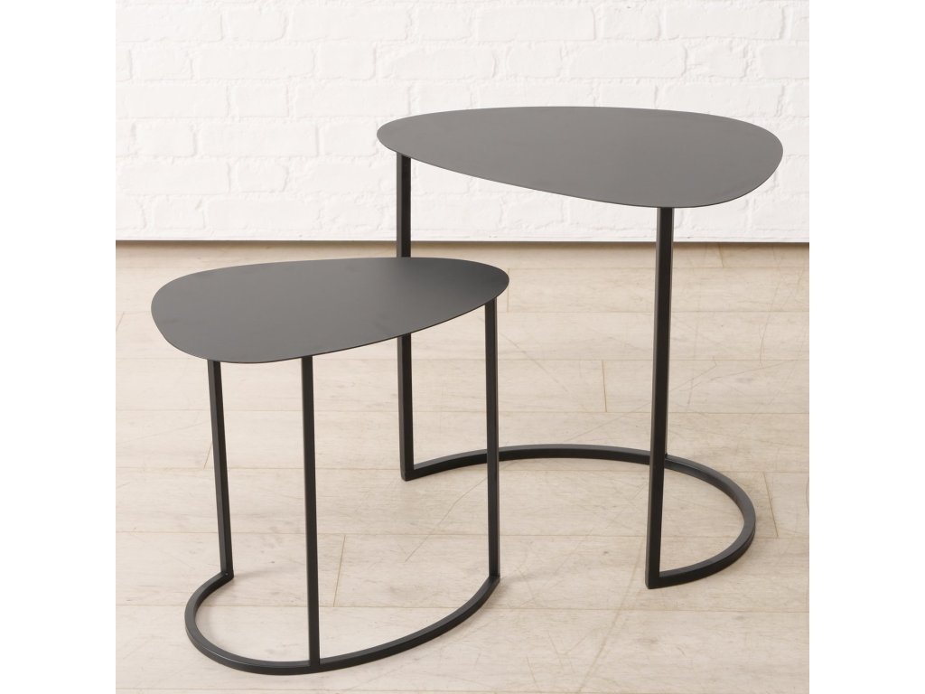 Sada 2 odkládacích stolků JERRY, kapkovitý tvar, kovové, šedý