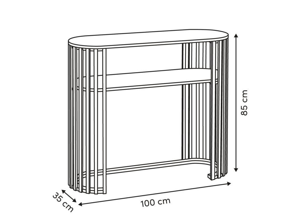 - Rozměry přizpůsobené interiéru: Konzole má rozměry 100 x 35 x 85 cm, což z ní činí ideální řešení do menších prostor. Její kompaktní rozměry umožňují snadné začlenění do různých aranžmá, aniž by zabírala příliš mnoho místa.
