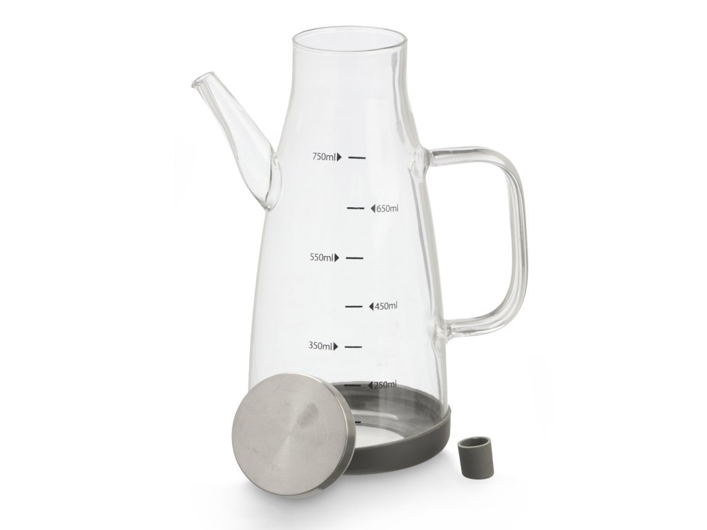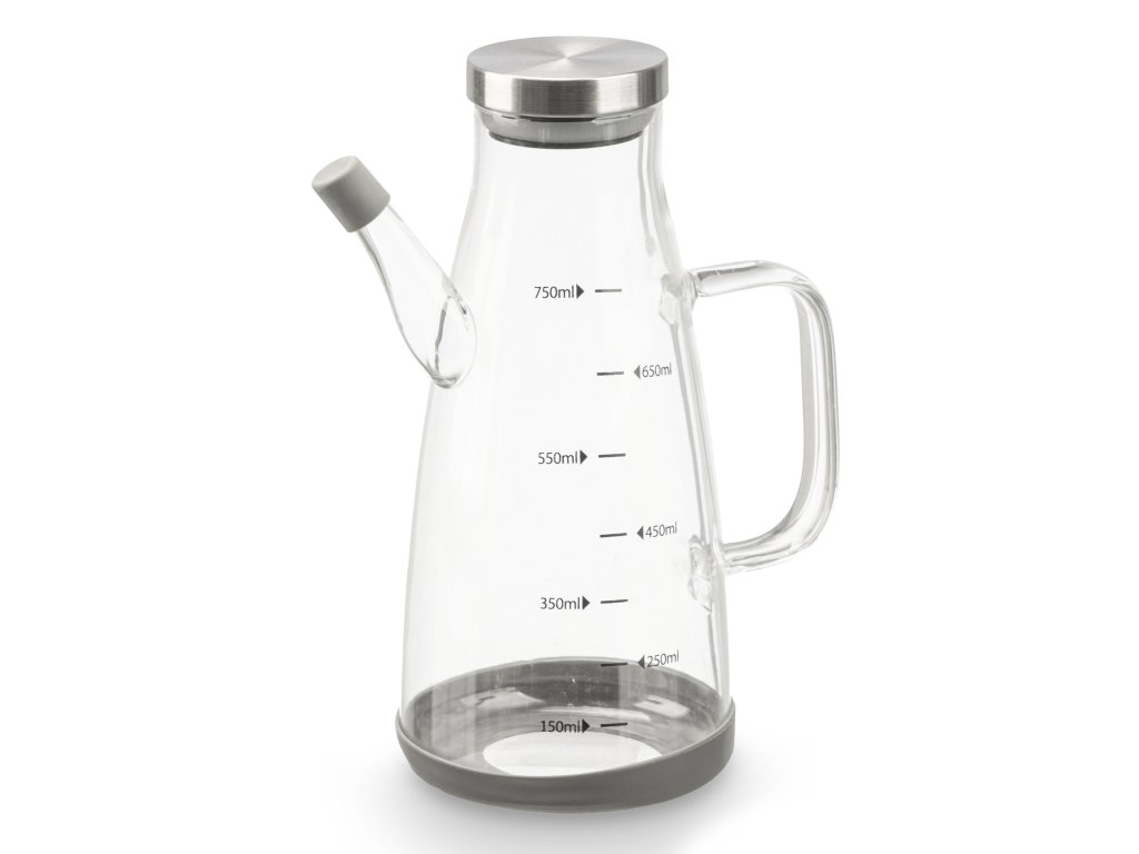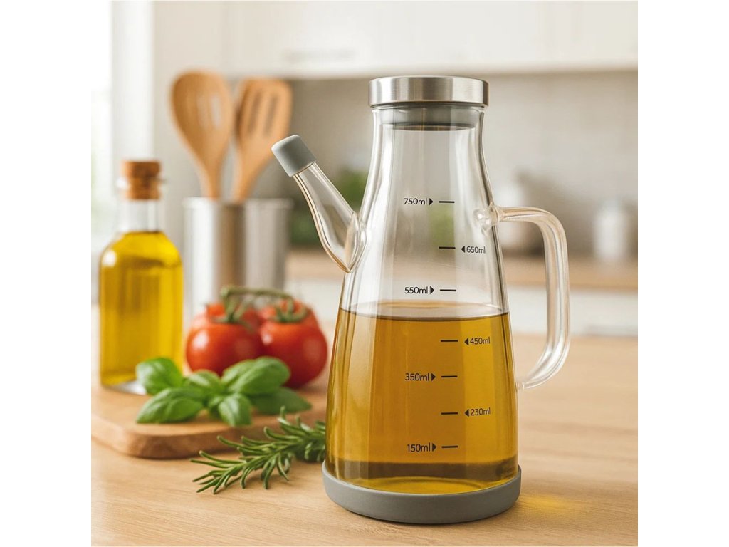 - Praktický dávkovač: Sklenice na olej o objemu 750 ml je ideálním řešením pro uchovávání a dávkování oleje, což usnadňuje přípravu pokrmů. Díky ergonomické rukojeti je používání pohodlné a komfortní.