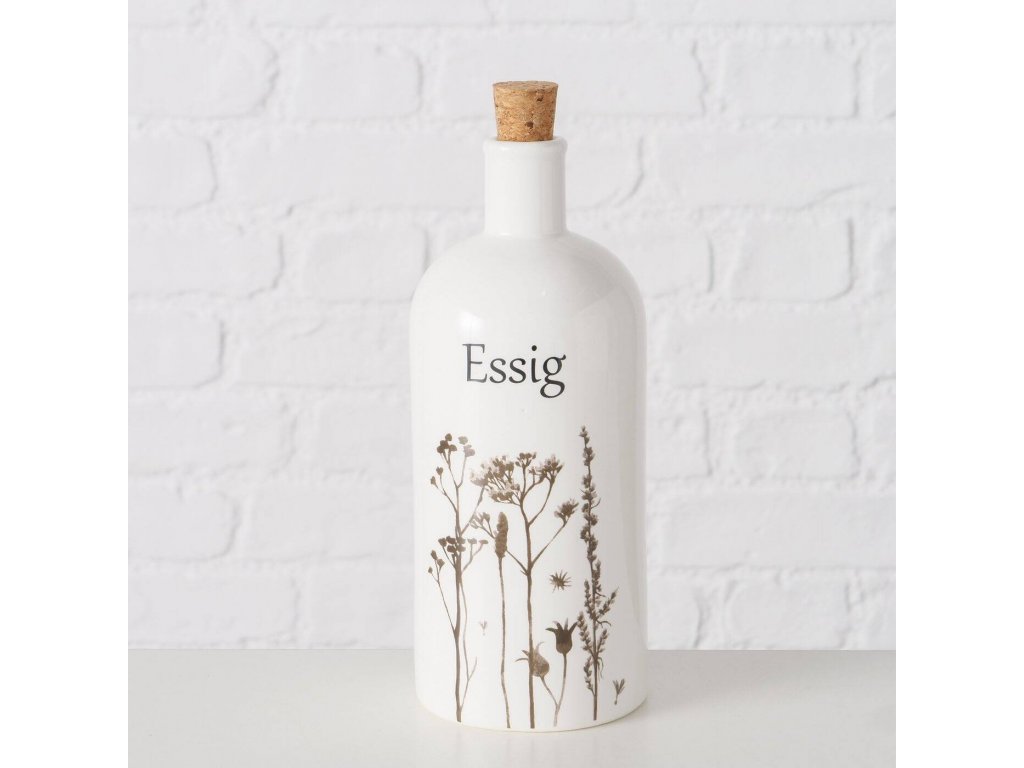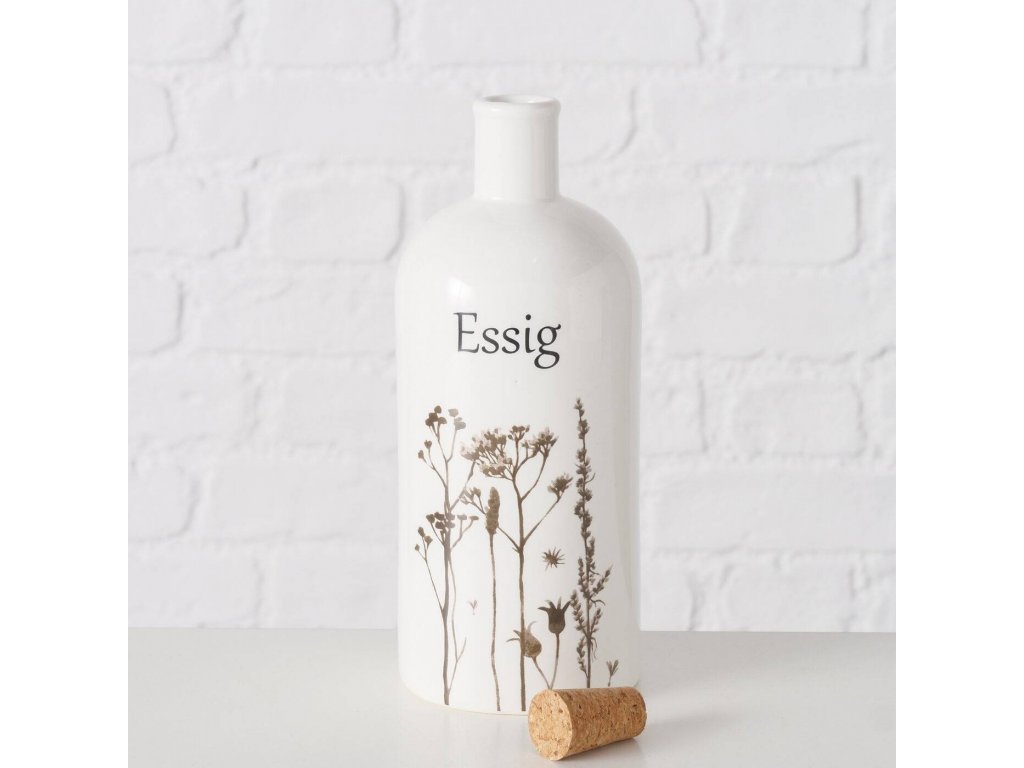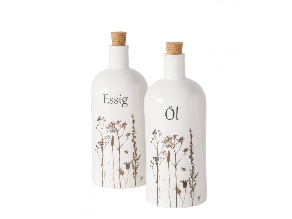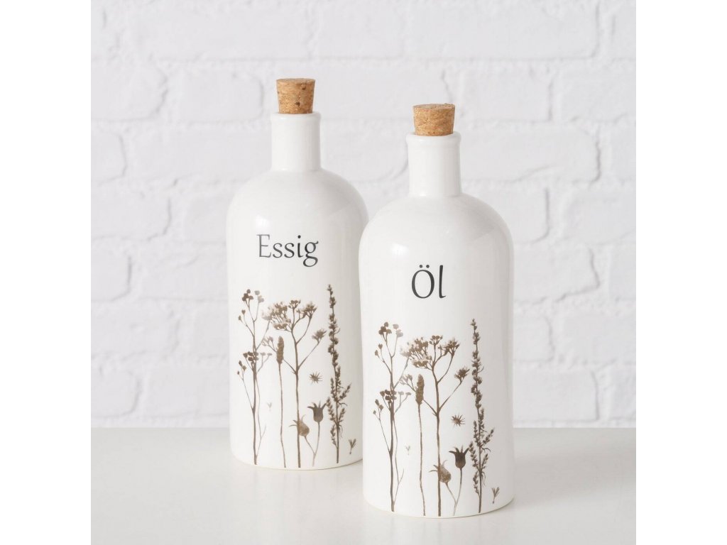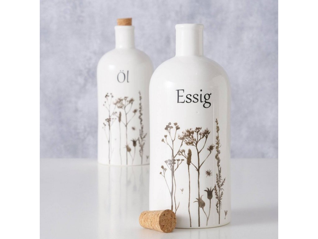 - Ručně vyrobená keramika: Vyrobená z kameniny, každá láhev je ručně zdobená vzorem polních květin a nápisem "olej" nebo "ocet" v němčině.