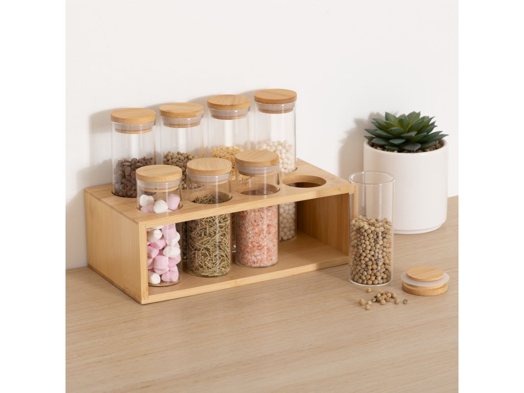 Sada nádob na koření z borosilikátového skla a bambusu - praktické a estetické řešení do každé kuchyně