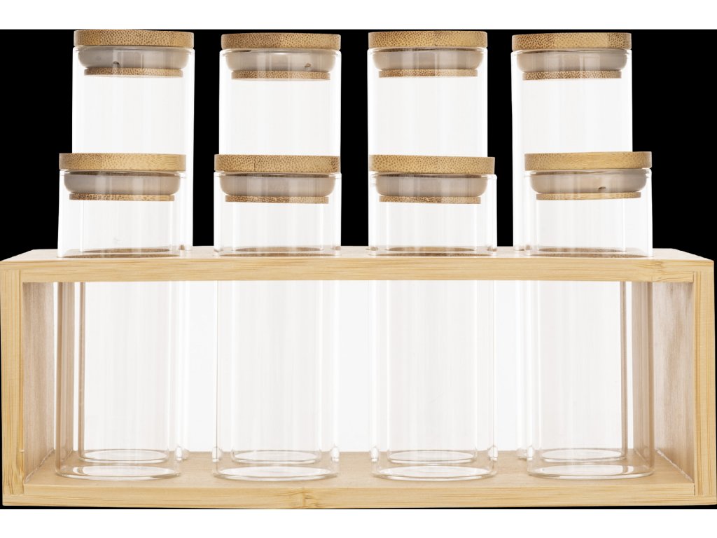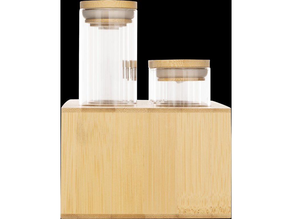 - Vysoce kvalitní materiály: Nádoby jsou vyrobeny z borosilikátového skla, které je odolné vůči vysokým teplotám a poškození. Přírodní víčka z bambusu zajišťují hermetické uzavření, což chrání obsah před vlhkostí a ztrátou aroma.