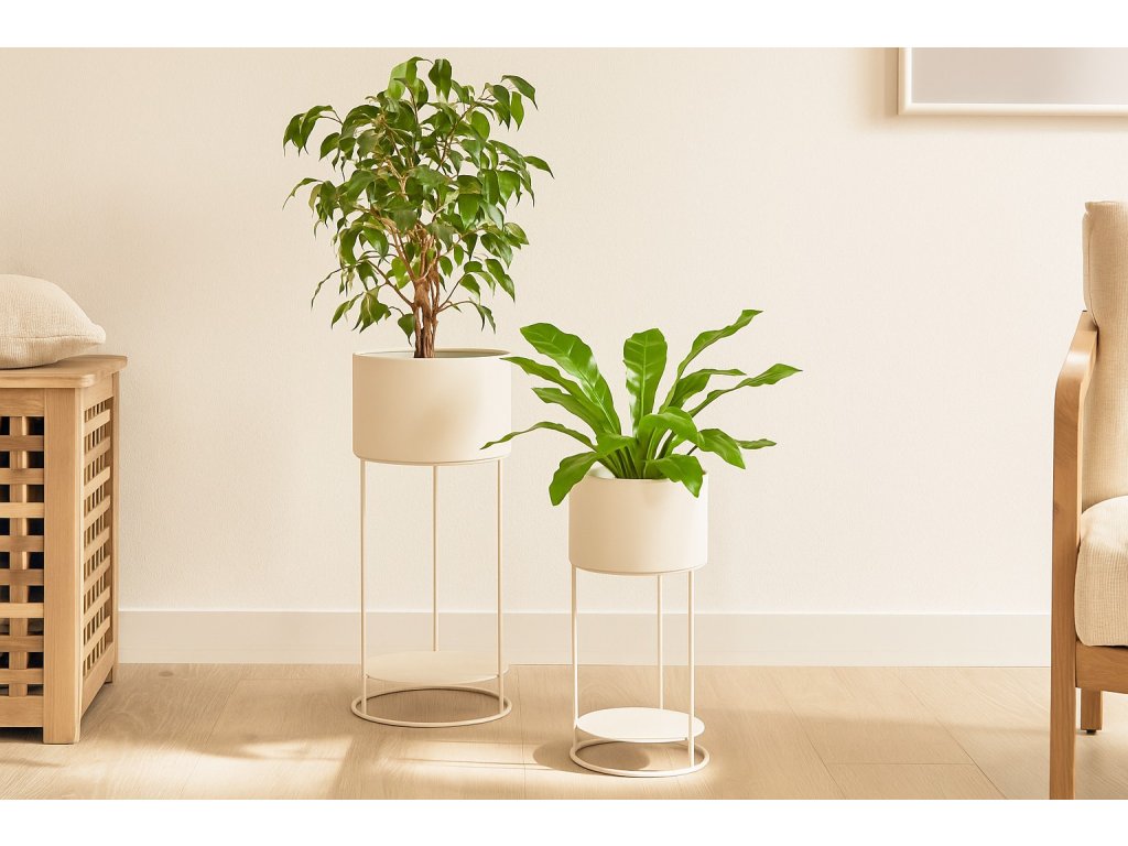 - Stylová sada květináčů: Sada dvou kovových květináčů OMEE je ideálním řešením pro milovníky rostlin, kteří chtějí přidat trochu elegance do svého interiéru. Díky různým velikostem je můžete umístit v libovolné konfiguraci, čímž vytvoříte harmonickou kompozici.