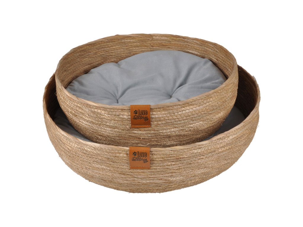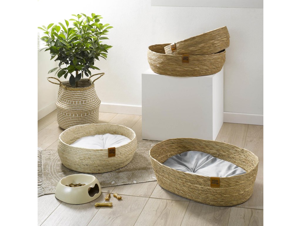 - Stylové koše: Konstrukce pelíšků je vyrobena z mořské trávy. Dokončení z přírodního materiálu zajišťuje, že doplňky najdou své místo i v rustikálních interiérech.