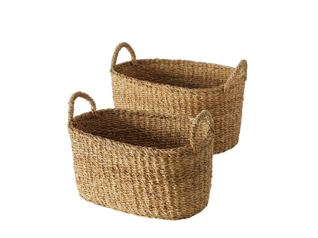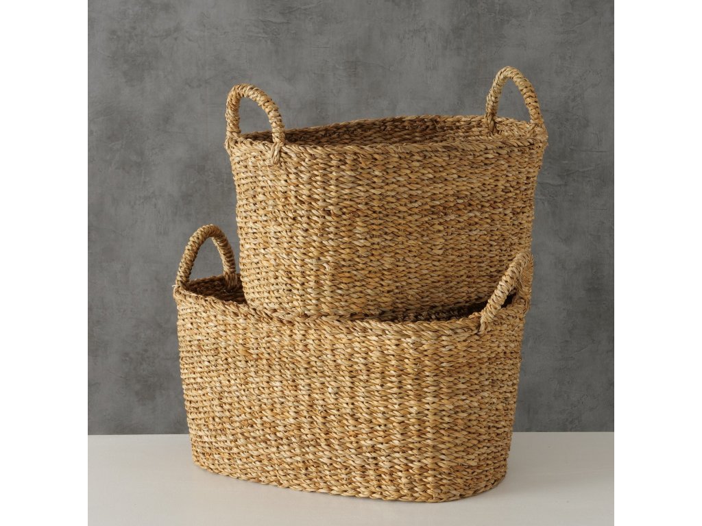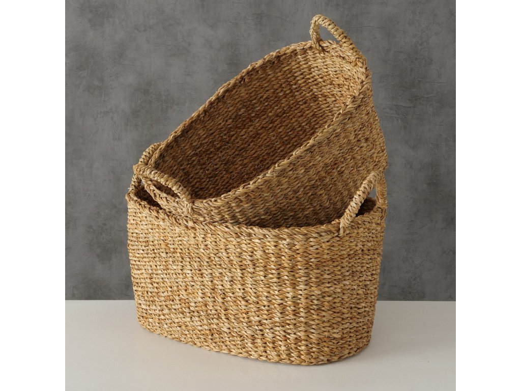- Koše v boho stylu: Dva ručně pletené koše SOPHY vyrobené z mořské trávy, ideální pro ukládání různých předmětů v domácnosti. Materiál se krásně prezentuje a zapadá do trendů udržitelného designu.