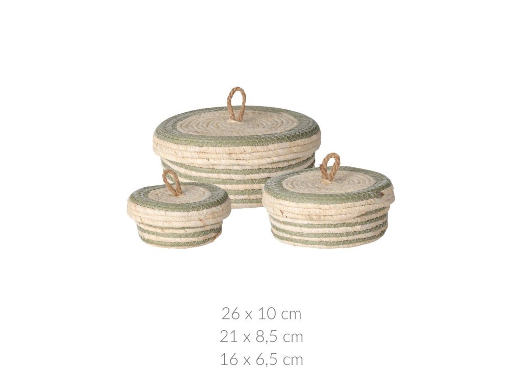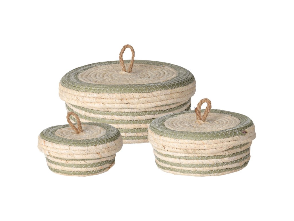 Úložné slaměné koše s víkem, 3 kusy v sadě, zelená barva