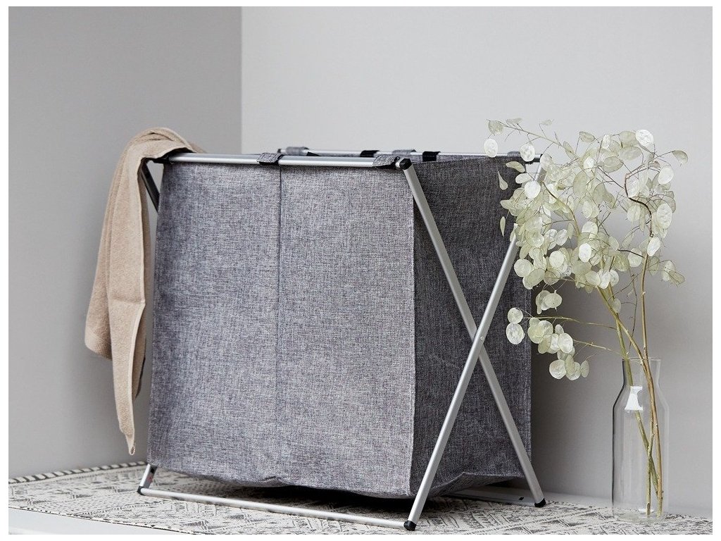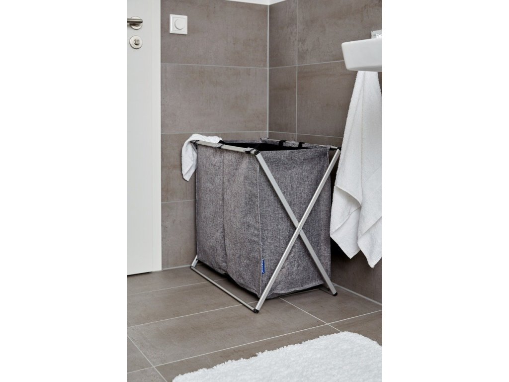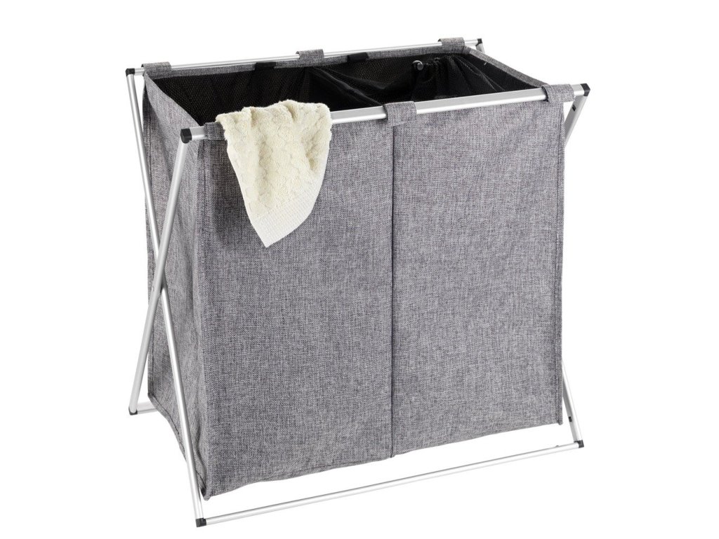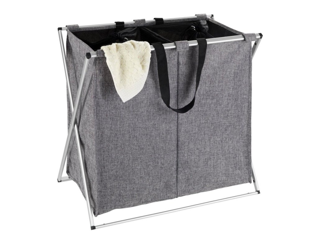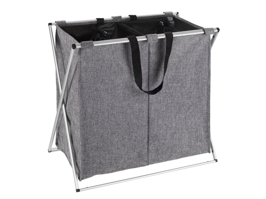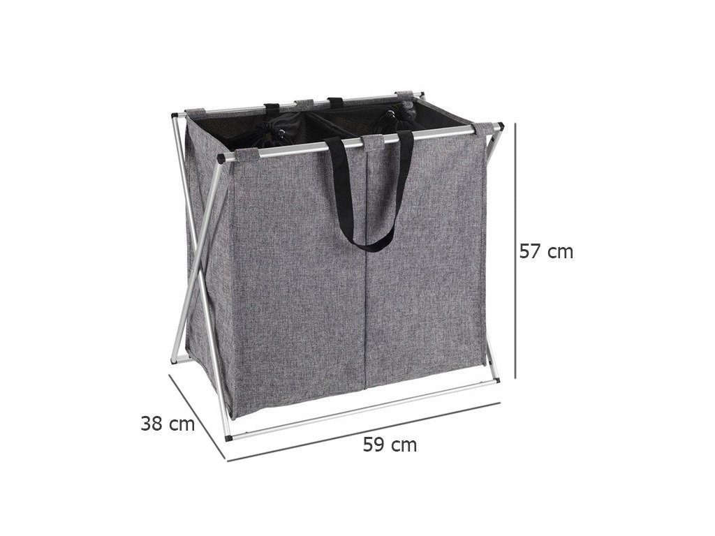 Koš Duo vybavený dvěma přihrádkami usnadní organizaci oblečení a dalších věcí určených k praní! Máte už dost třídění špinavých věcí naházených nedbale do jednoho koše na prádlo všemi členy domácnosti? Dokonalým řešením je kontejner Duo vybavený dvěma oddělenými přihrádkami, díky kterým bude prádlo seřazeno podle vámi stanovených pravidel, a po naplnění koše stačí sebrat jeho obsah a umístit do pračky. Produkt vám ušetří váš cenný čas usnadněním třídění špinavého oblečení a dalších věcí. Koš na prádlo Duo o rozměrech 59 x 57 x 38 cm byl vybaven dvěma kontejnery o objemu 60 litrů vyrobenými z odolného polyesteru v šedé barvě. Rám produktu z hliníku je mimořádně lehký, takže pomocí umístěných v horní části úchytů ho můžete přenést kamkoli. Koš můžete snadno složit, abyste ušetřili místo při skladování.