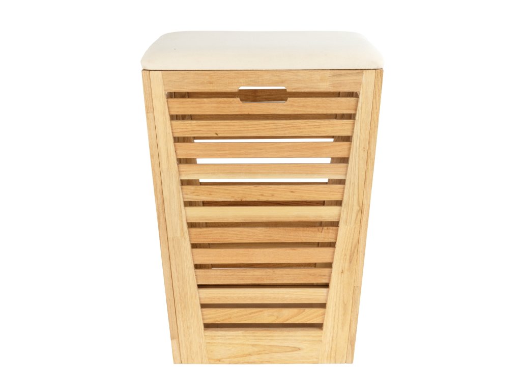 Mycí koš se sedadlem z plátna imitujícího materiálu ACINA, akáciové dřevo, 55 litrů, přírodní barva, Wenko