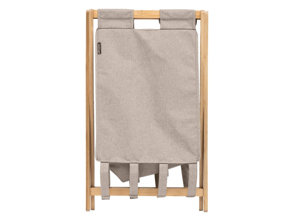 - Vysoce kvalitní materiály: Vyrobený z kombinace bambusu a polyesteru, koš je nejen odolný, ale také estetický. Tyto materiály zajišťují dlouhověkost a snadnost údržby čistoty.