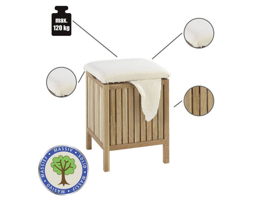 Koupelnový taburet na prádlo NORWAY, 2v1, 52 x 39 x 39 cm, WENKO
