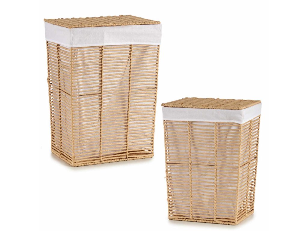 - Proutěné koše s víkem: V sadě najdete dva koše - velký a malý. Nádoby jsou vyrobeny z proutí - jsou vybaveny elegantními víky a látkovými vaky z polypropylenu.