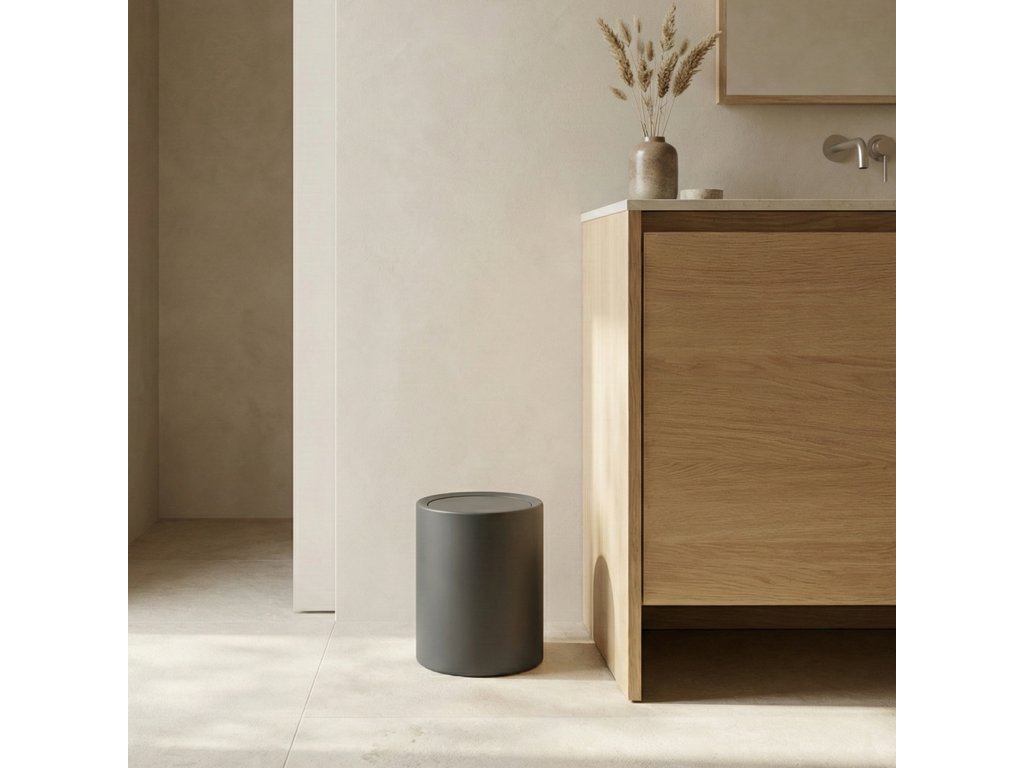Koš RUND je ideálním příkladem produktu, který spojuje funkčnost s diskrétností. Díky chytré konstrukci s nasazovacím víkem zůstává obsah koše vždy neviditelný, což výrazně ovlivňuje estetiku koupelny.