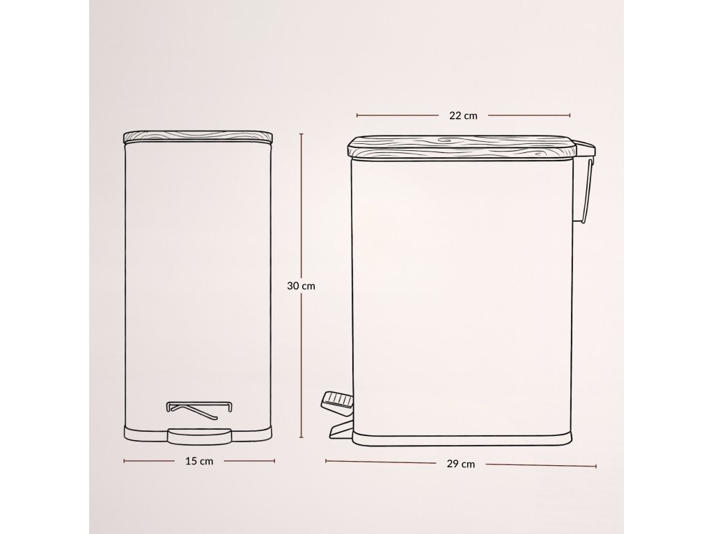 - Ideální pro malé prostory: Díky výjimečně úzké konstrukci (pouze 15 cm šířky) se koš vejde do malých nik, např. mezi toaletou a skříní.