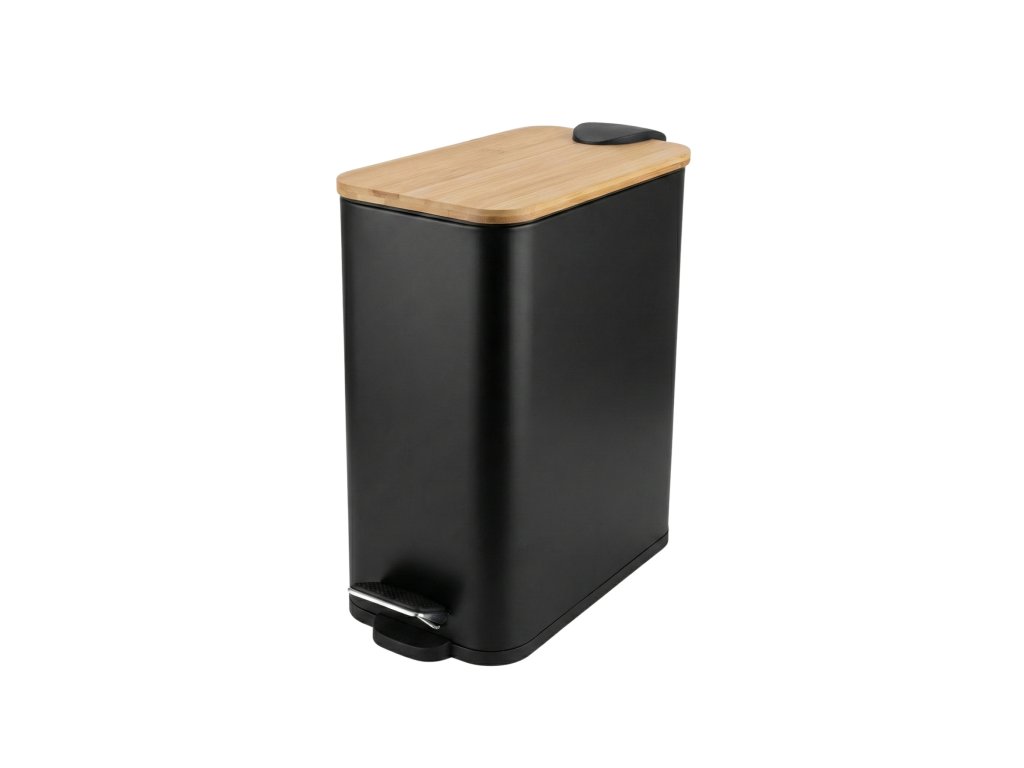 Úzký koupelnový koš VEDA s bambusem, 5 l