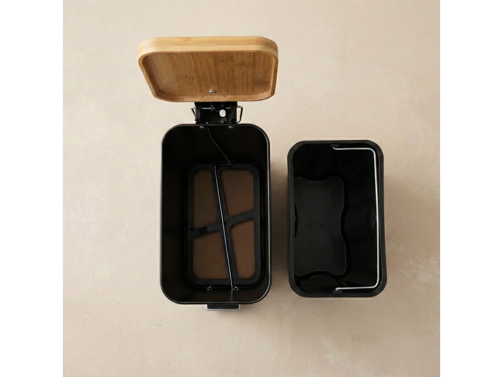 - Vyjímatelný vložka: Vnitřní kbelík s držadlem umožňuje rychlé a hygienické vyprázdnění obsahu bez nutnosti přenášení celého koše.