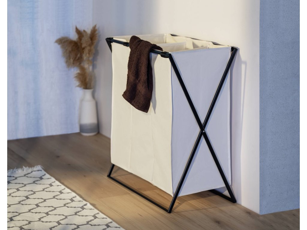 Koupelnový koš na prádlo s dělením na tři přihrádky - pohodlná segregace a skladování prádla