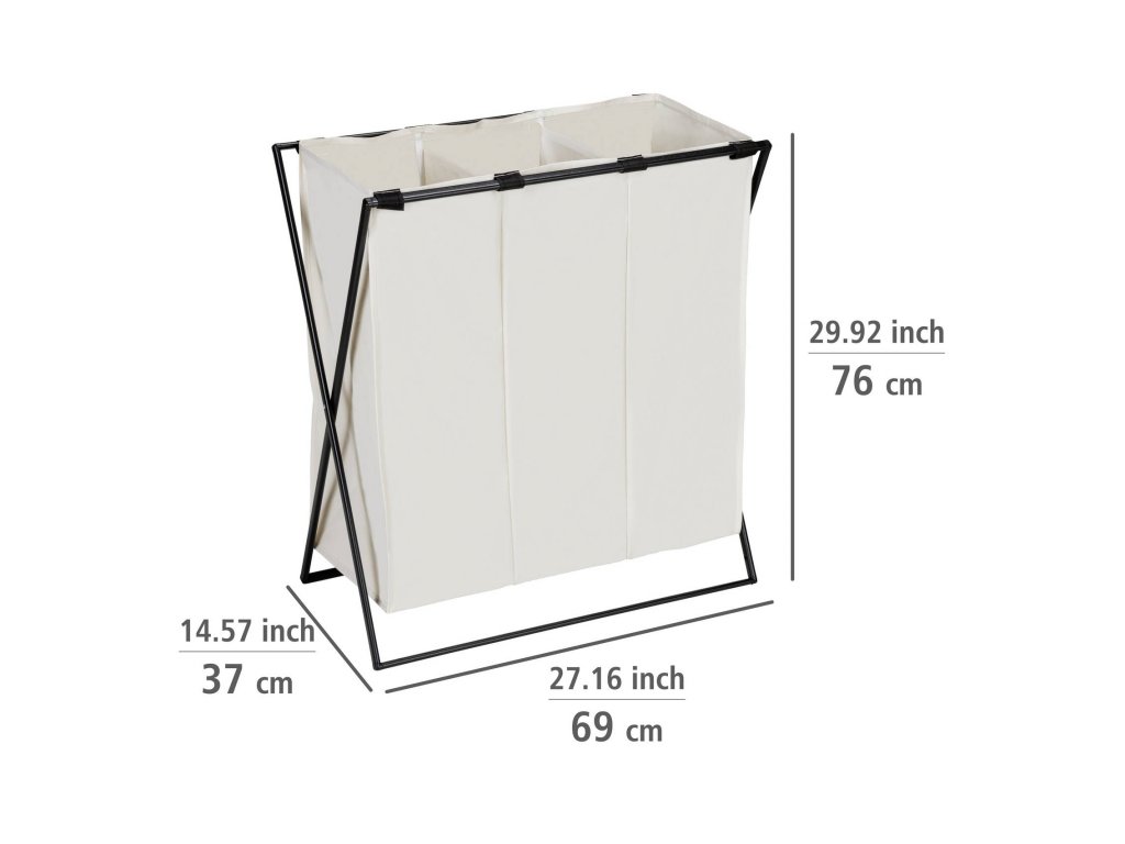 - Objem 145l: Koš Trio má objem 145 litrů, což umožňuje skladování velkého množství špinavého prádla.