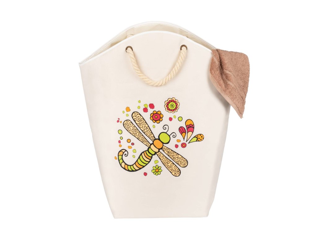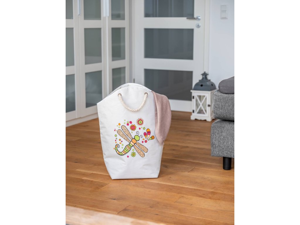 Bežový koš na prádlo s barevnou ilustrací od německé umělkyně Tiny Hötzendorfer - zvolte umělecký vzhled a funkčnost