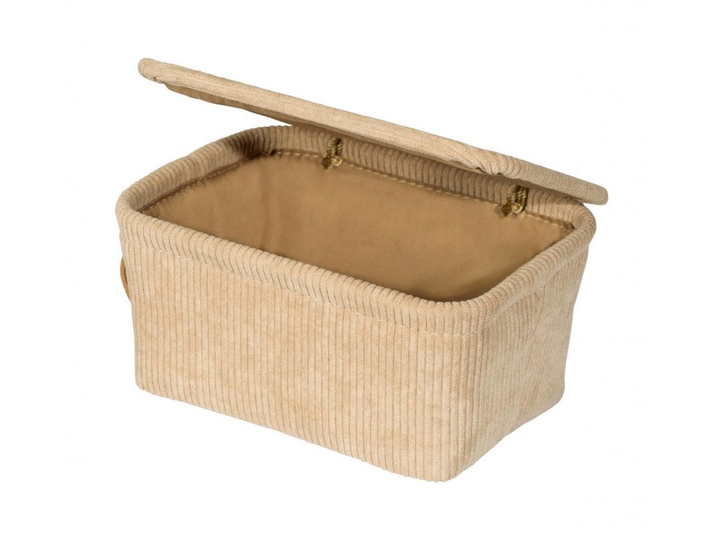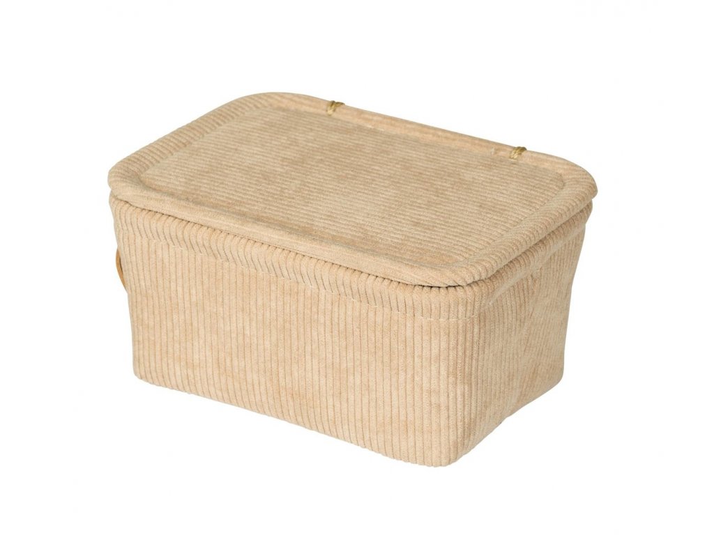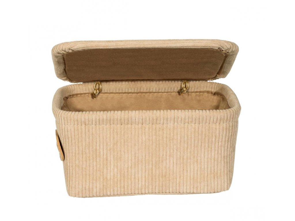 Úložný košík do koupelny s víkem ANELA, 14 x 19 cm, béžový, WENKO