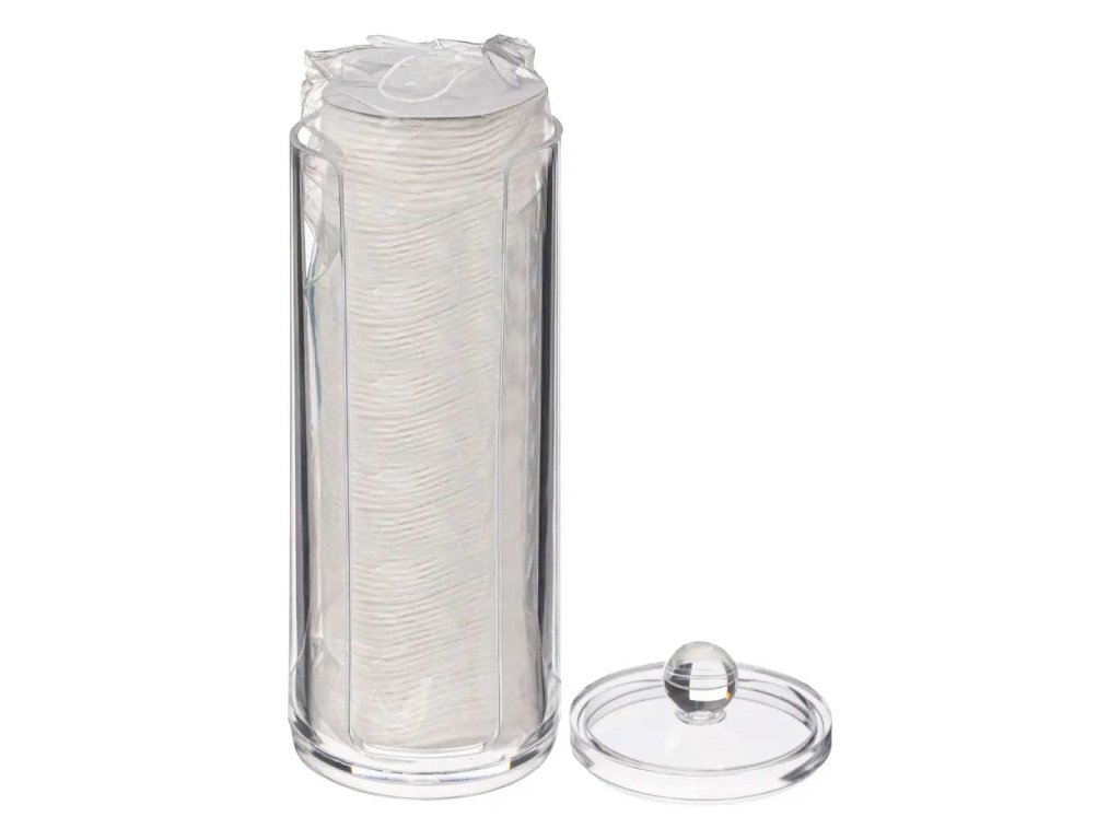 Průhledná nádoba s rezervou vatových tamponů - praktické řešení pro ukládání tamponů