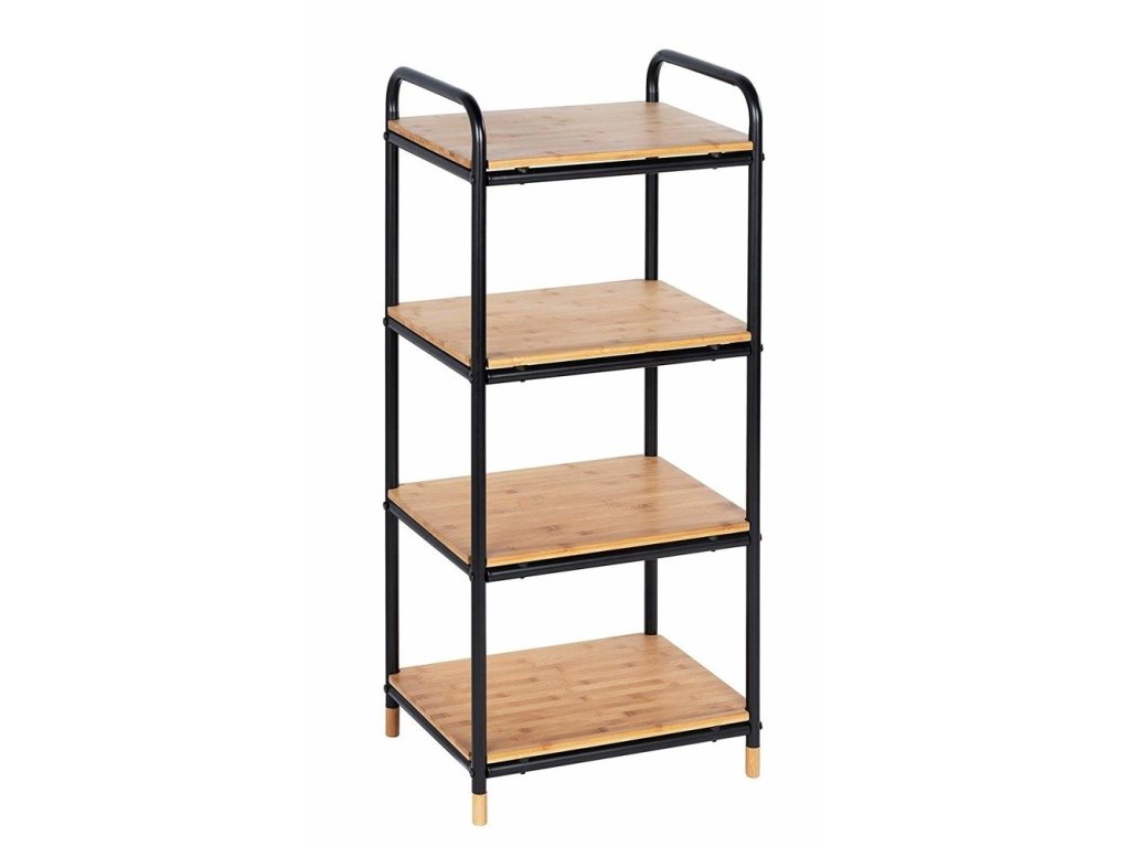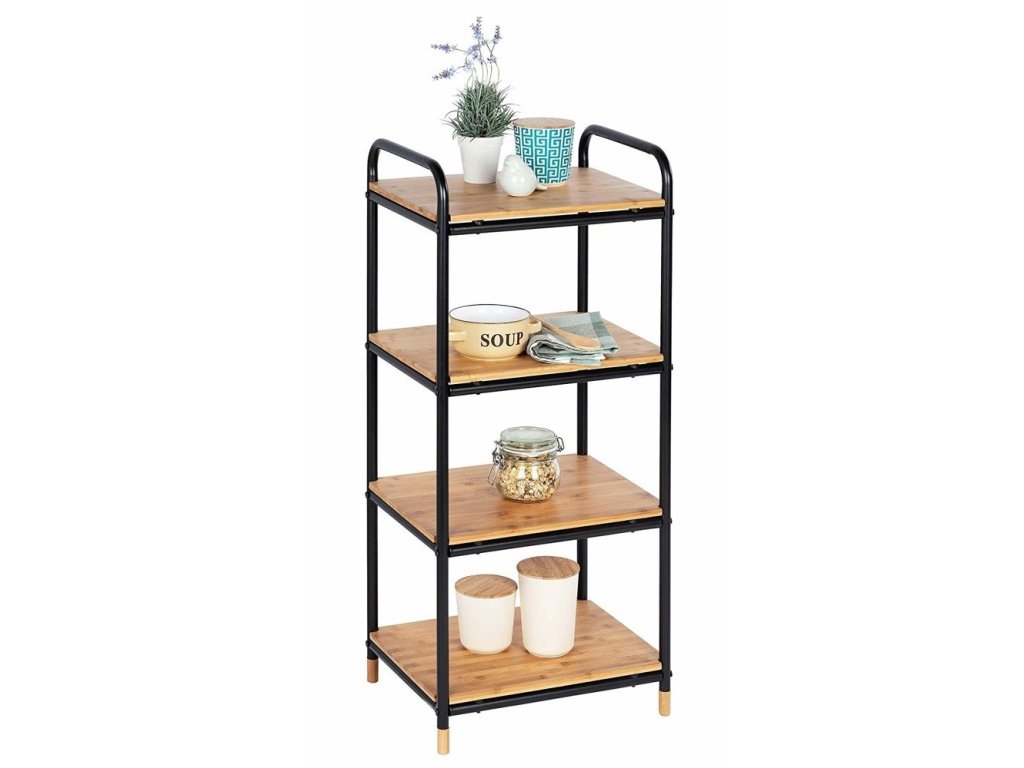 A tady přichází koupelová police WENKO, která bude dokonale fungovat i v malém nebo špatně položeném prostoru koupelny. Nezabírá mnoho místa a na regálech můžete dát opravdu obrovské množství věcí. Je v neutrální černé barvě s bambusovými policemi.