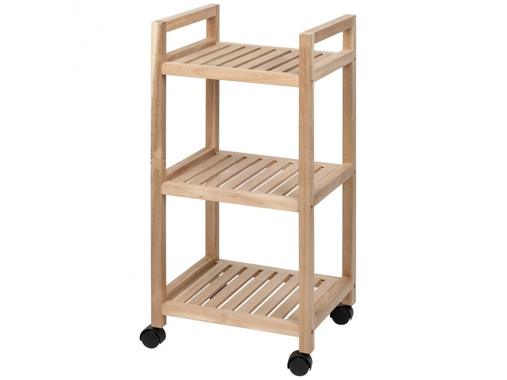 Univerzální regál na kolečkách se třemi policemi pojme vše potřebné v koupelně: kosmetiku a kosmetické potřeby, ručníky, čisticí prostředky. Rozměry produktu: dloužka 31 x šířka 35 x výška 72 cm, maximální zatížení je 15 kg; zatížení police: 5 kg.