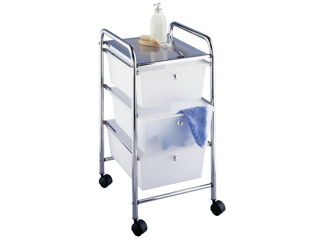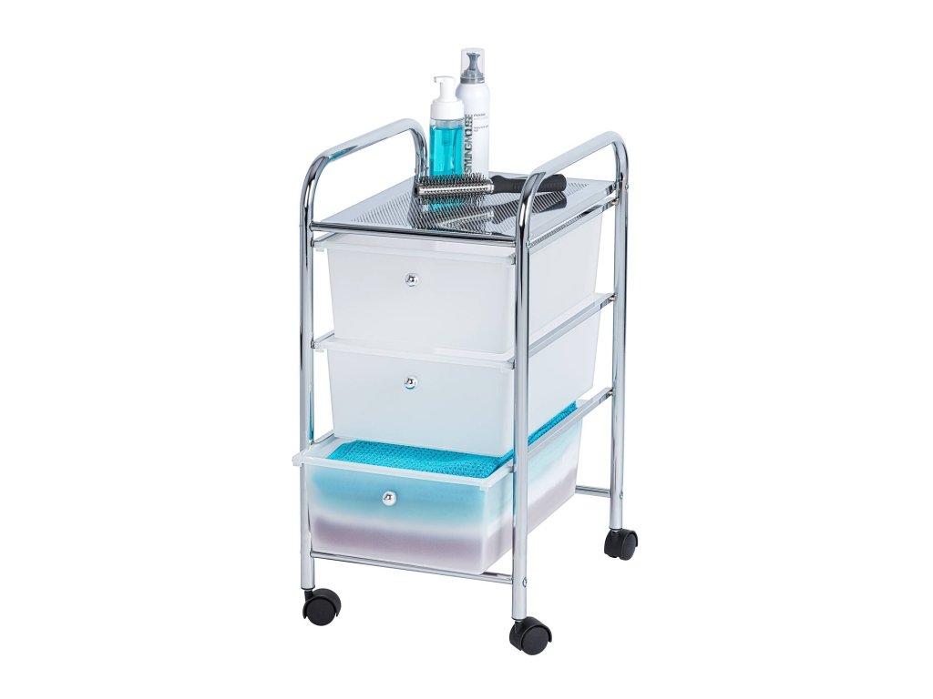 Koupelnový vozík MESSINA s kovovými zásuvkami a kolečky na ukládání kosmetiky - praktické řešení pro uspořádání prostoru v koupelně