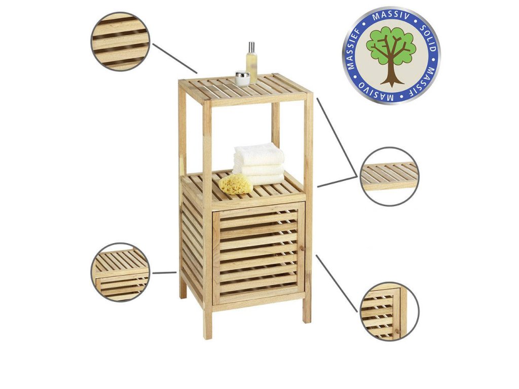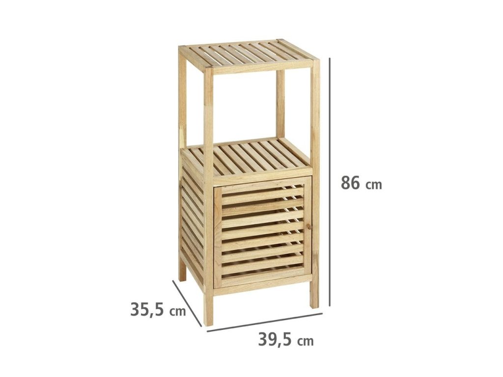 Moderní koupelnová police z masivního ořechového dřeva. Ukáže se jako ideální pro ukládání ručníků, županů a koupelnových doplňků. Pomůže zorganizovat prostor chytrým způsobem a zároveň nezabere mnoho místa. Je vybavena 3 policemi s žebrovou konstrukcí. Spodní police s dvířky. Snadno čistitelný povrch. Určitě se skvěle hodí do malé koupelny a také do kosmetického salonu nebo SPA. Skvěle se skloubí s interiéry ve stylu eko.