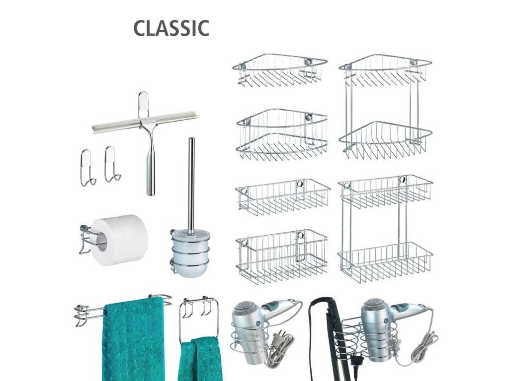 Příslušenství ze série Wenko Classic lze namontovat pomocí přiložených hmoždinek a šroubů nebo použít samostatně zakoupené montážní prvky ze série Power-Loc, Turbo-Loc nebo Vacuum-Loc