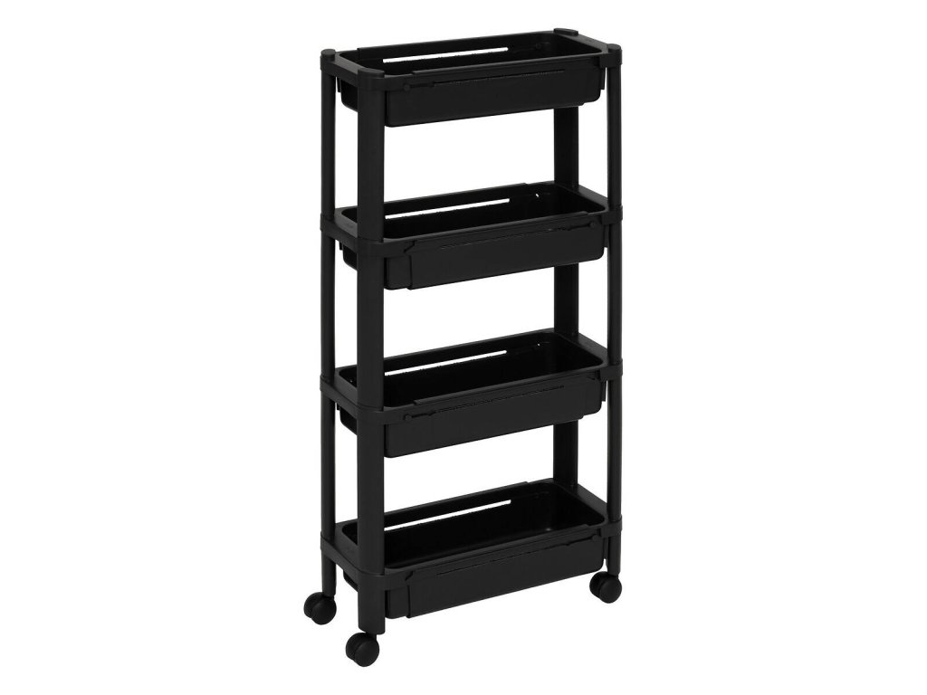 Úzký kuchyňský vozík na kolečkách SIMPLE, plastový, černý