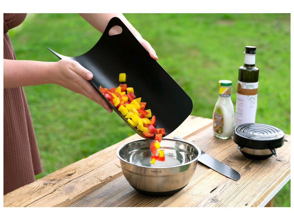- Bezpečné používání: Díky protiskluzovému povrchu desky stabilně drží na stole, což zvyšuje komfort a bezpečnost při krájení.