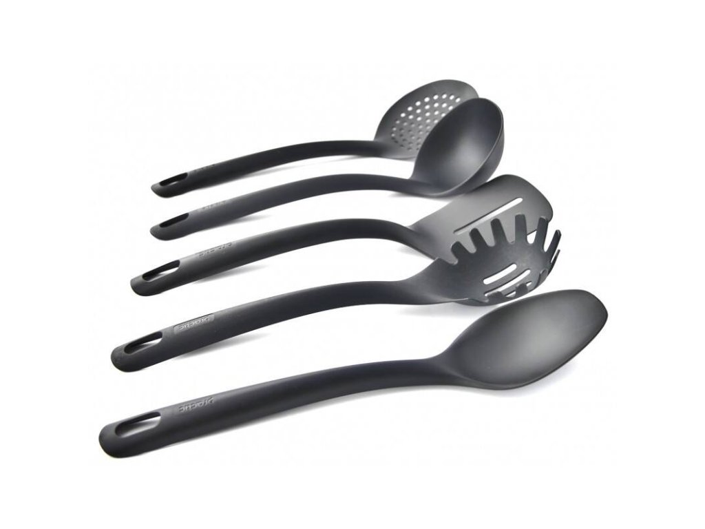 - Praktická sada: V sadě najdete míchací lžíci, lžíci na špagety, plochou obracečku s otvorem, cedící lžíci a naběračku. Každý z těchto nástrojů byl pečlivě navržen, aby usnadnil vaši práci v kuchyni.