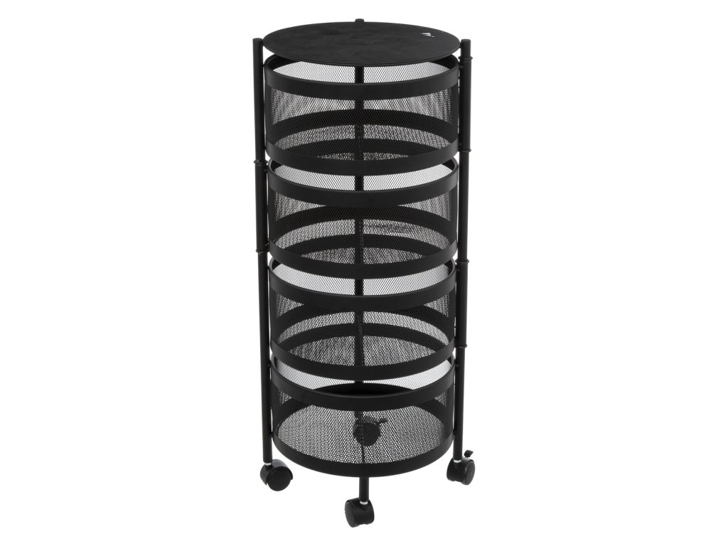 Otočný kuchyňský vozík, 4-patrový, černý, kovový