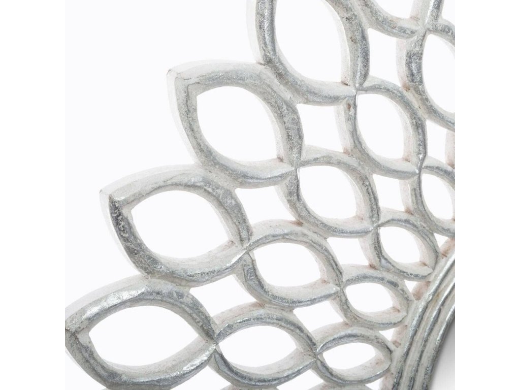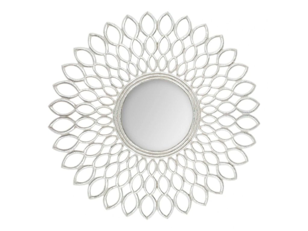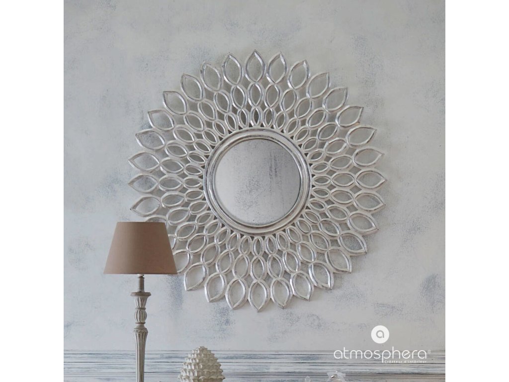 Dekorativní zrcadlo FLOWER je produktem oblíbené značky Atmosphera, která je proslulá kvalitními doplňky a dekorativními předměty. Zrcadlo má nejmódnější, kulatý tvar a mimořádně stylový rám. Rám je vyroben z odolného a lehkého MDF. Výrobek má tyto rozměry: délka 90 cm x šířka 90 cm x výška 2 cm. Univerzální, stříbrná barva bude krásným doplňkem interiérů v moderním stylu. Zrcadlo bude ideálním doplňkem a krásné zaplní prázdnou stěnu v každé místnosti: v ložnici, předsíni nebo obýváku.