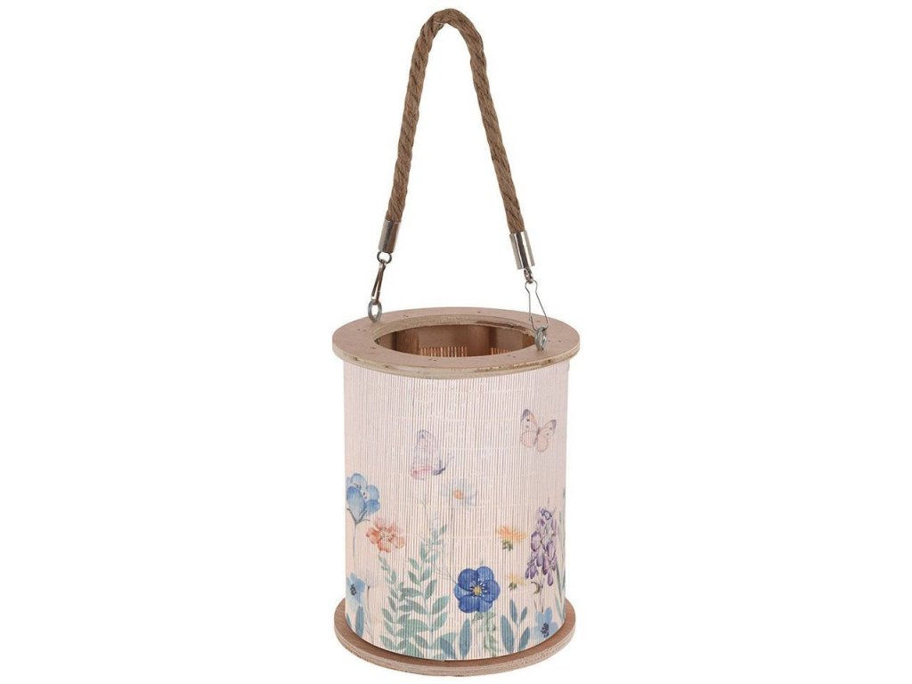 Bambusová lucerná s lánovém úchytem, O 17 x 21,5 cm, květinový vzor