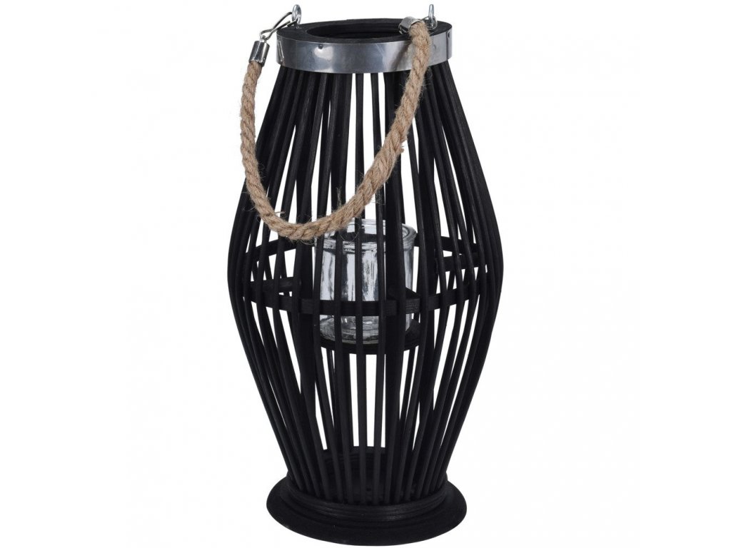 Dekorativní lucerna, bambus, závěsná lucerna, černá, 21x38 cm