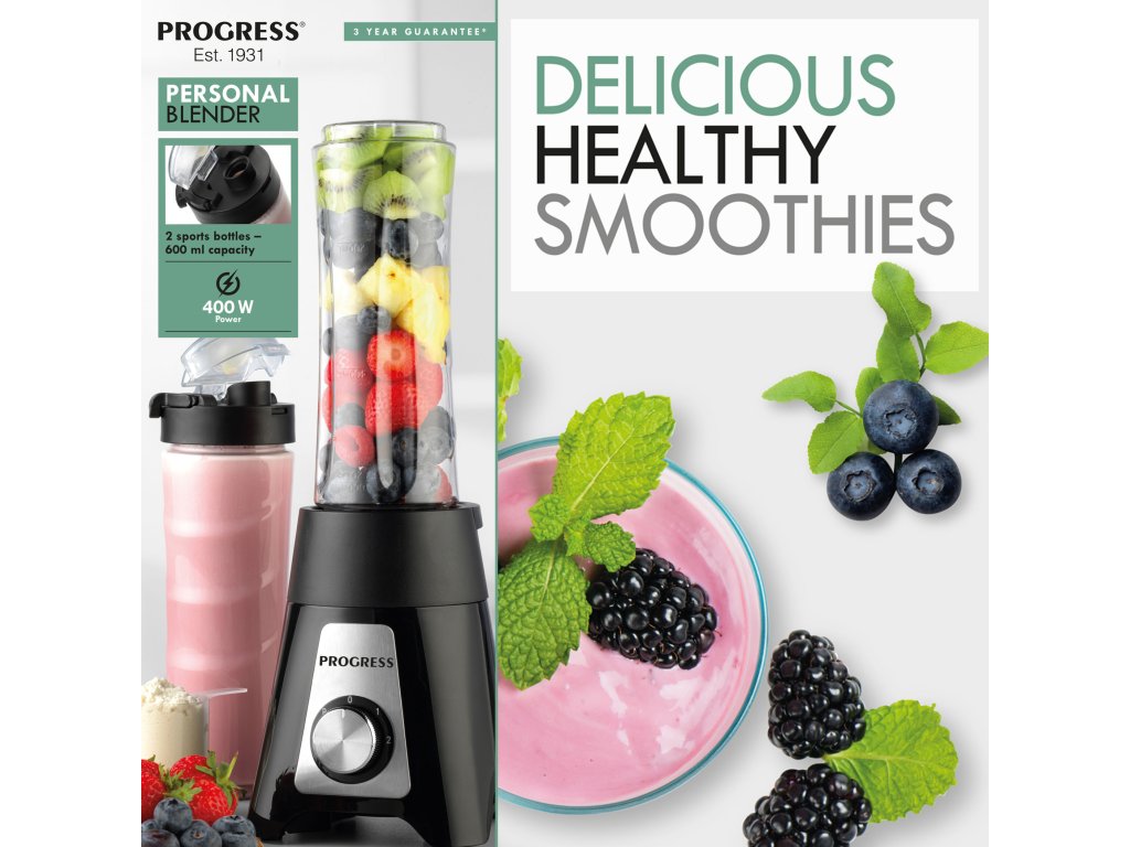 - Všestrannost v kuchyni: Mixér na smoothie PROGRESS s výkonem 400 W je ideálním řešením pro milovníky zdravého životního stylu. Díky dvěma rychlostem a pulznímu režimu práce můžeš snadno připravit chutné koktejly, smoothie a drtit led.
