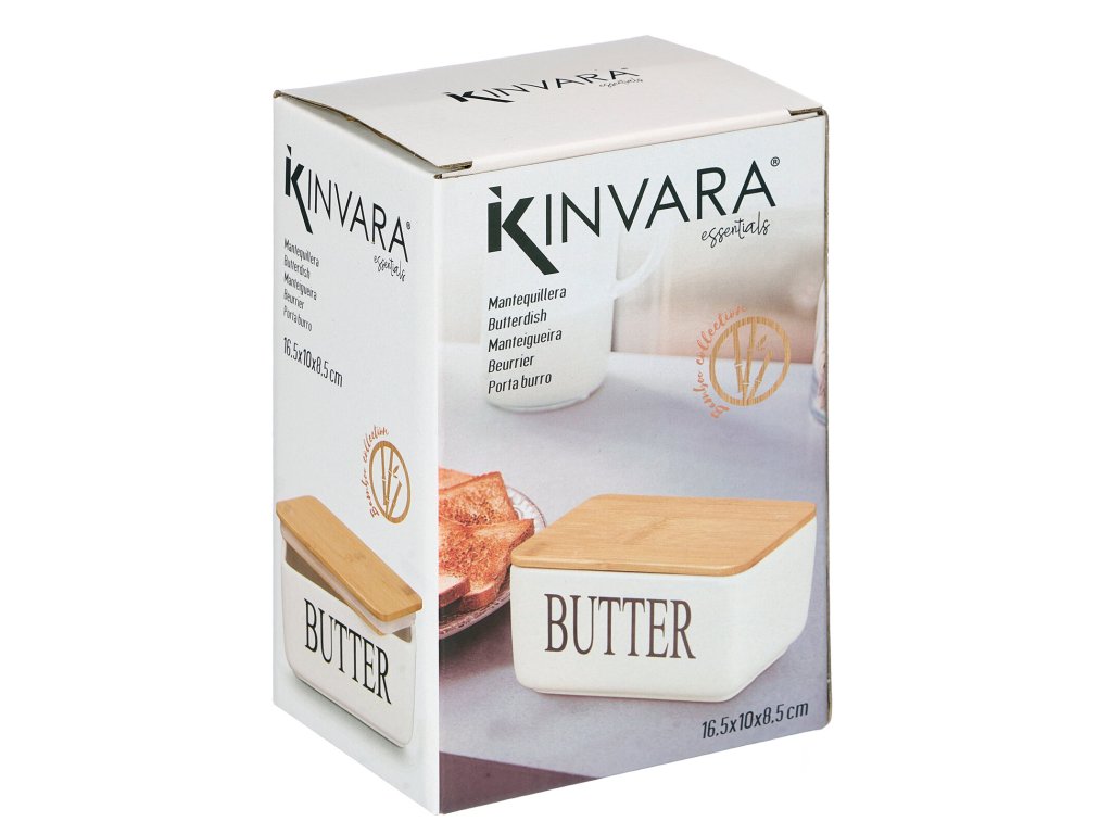 Ceramická máslenka KINVARA s bambusovým víkem pro uchovávání másla - elegantní a praktické řešení pro čerstvost vašeho másla