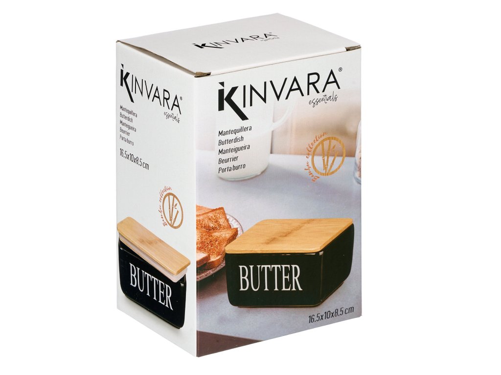 Ceramická máslenka KINVARA s bambusovým víkem pro uchovávání másla - elegantní a praktické řešení pro čerstvost vašeho másla