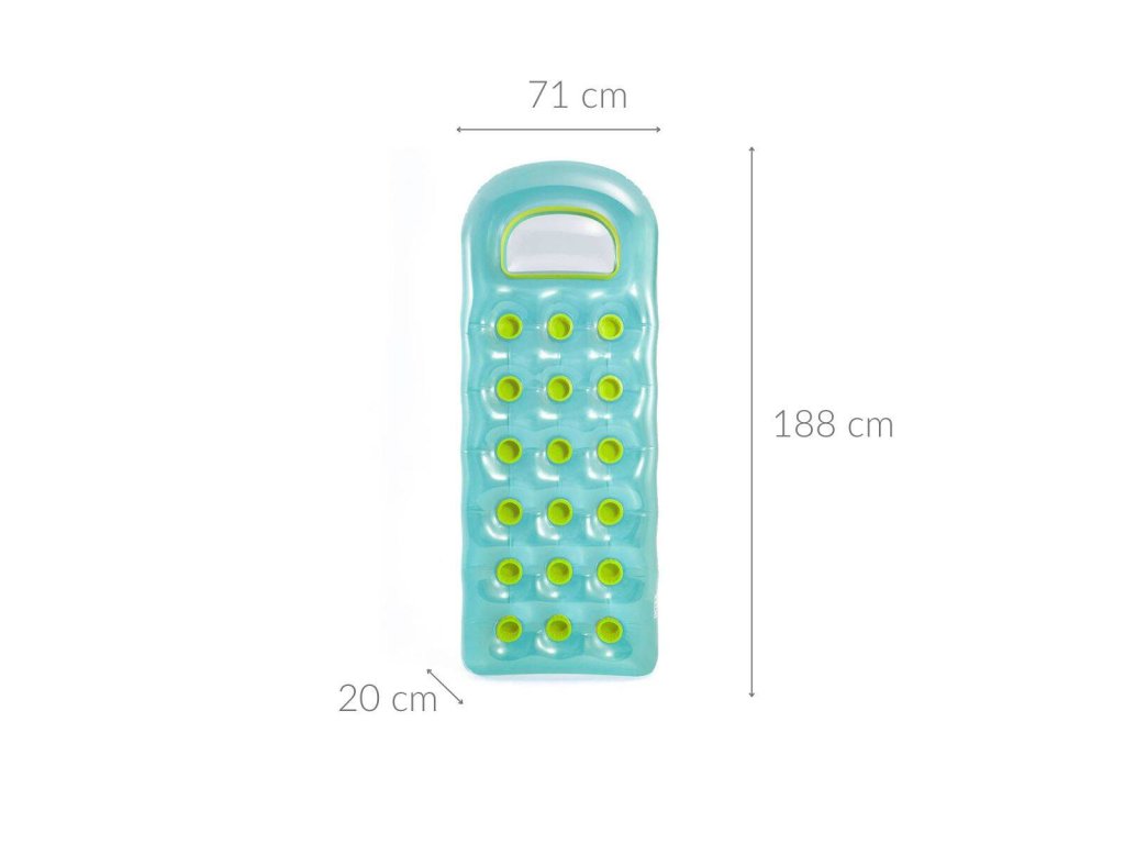 - Rozměry nafukovacího matrace: Matraci má 188 cm délky, 71 cm šířky a 20 cm tloušťky.
