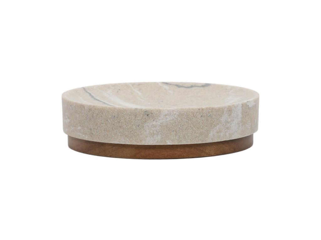 Elegantní mýdlenka z polyresinu a akáciového dřeva - moderní design a trvanlivost v každé koupelně