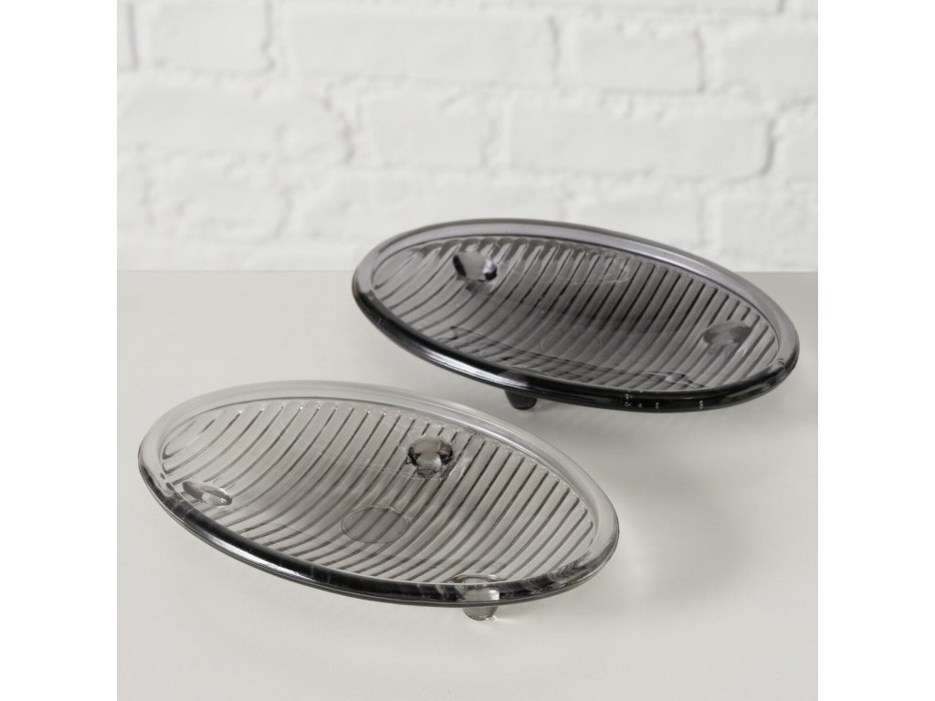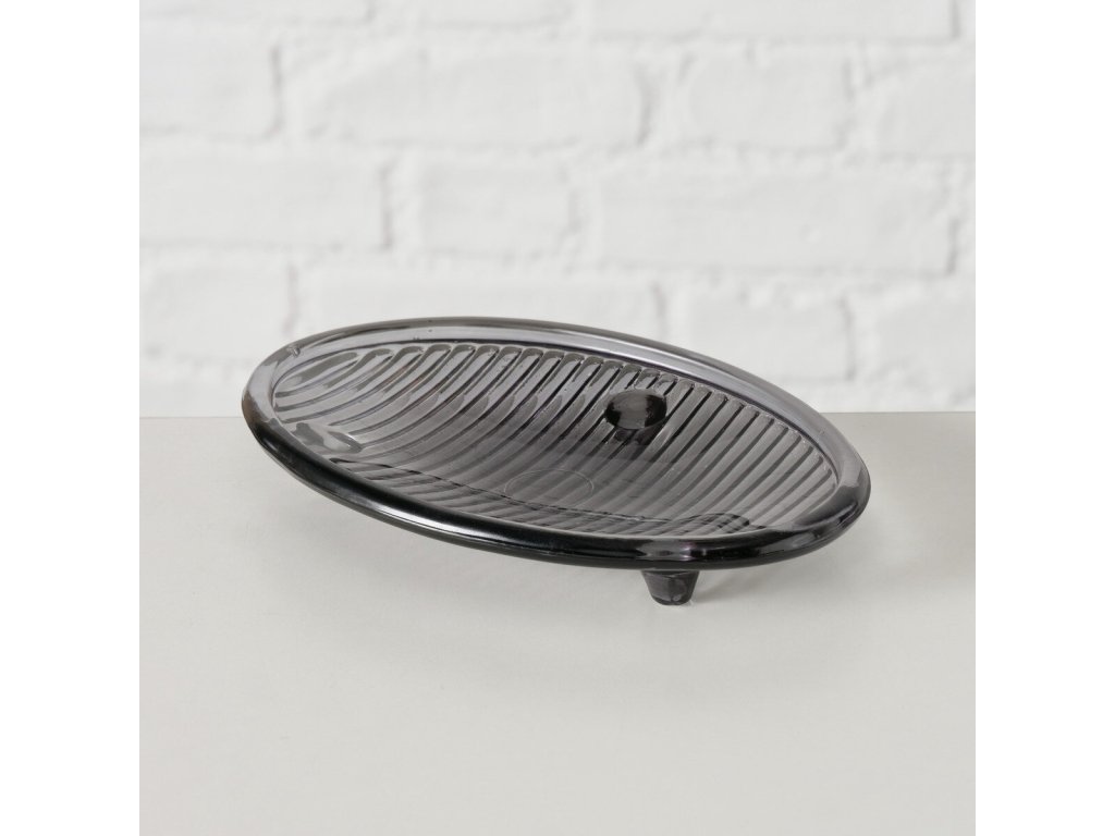 Skleněná miska na mýdlo BANGO, antracitová, 15 x 10 cm