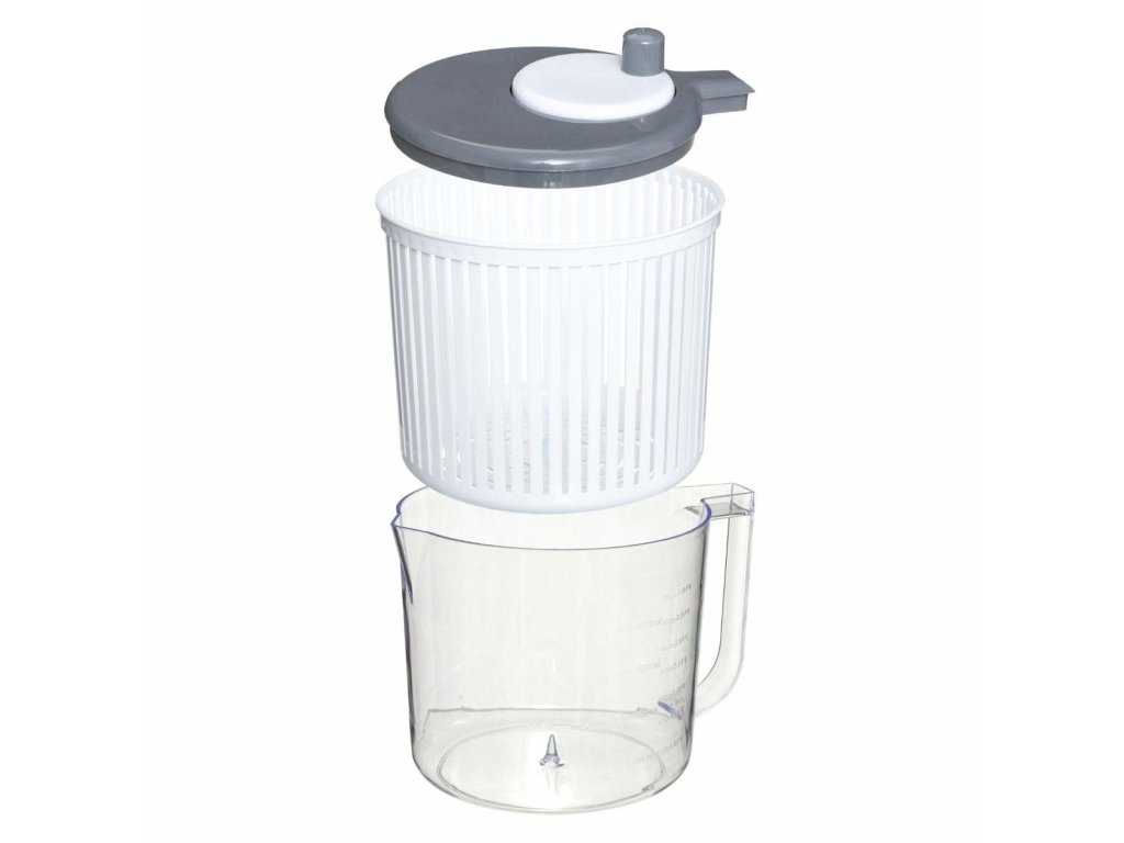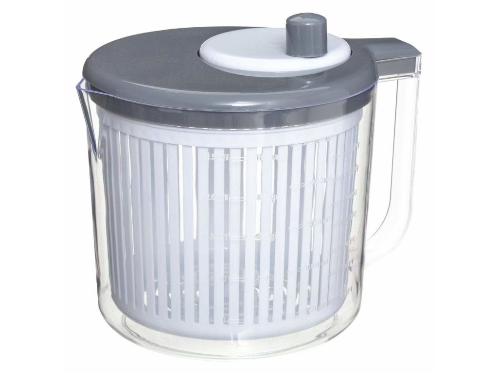 Odstředivka je vyrobena z odolného, průhledného plastu s rukojetí, které vám usnadní používání. Uvnitř je sítko s úzkými popruhy, kterými voda a možné nečistoty, jako je písek. Sloty jsou dostatečně úzké, aby se přes ně nedostaly kousky salátu, takže nic nebude zbytečné. Celý je pokryt víkem s rukojetí, s nímž umístíte odstředivku do pohybu. Kapacita 2,5 litru umožní odstředivý salát až pro 2 osoby.