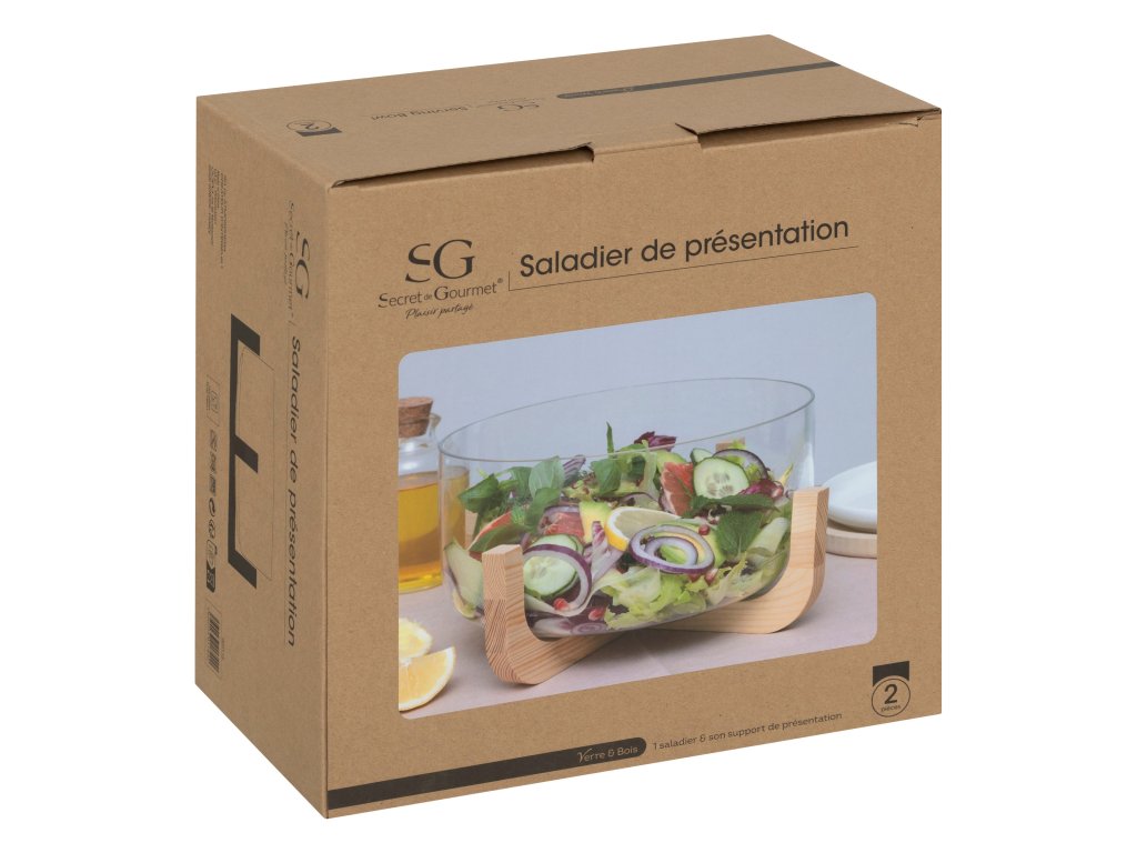 Skleněná mísa na salát s dřevěným podstavcem 28 cm ARHA - elegantní design, který se hodí do každé stolní aranžace