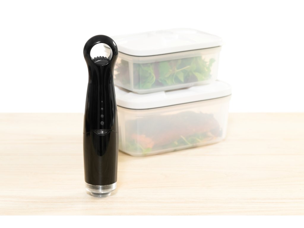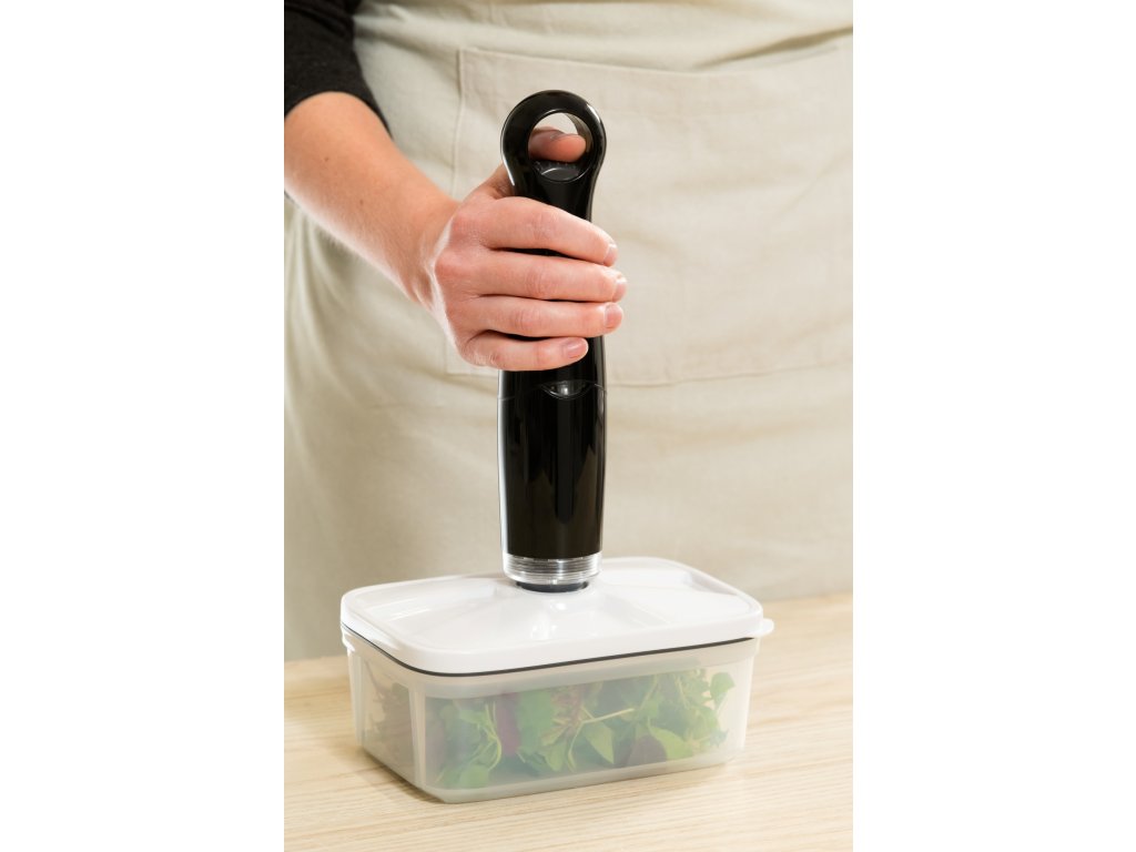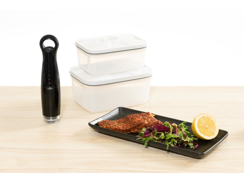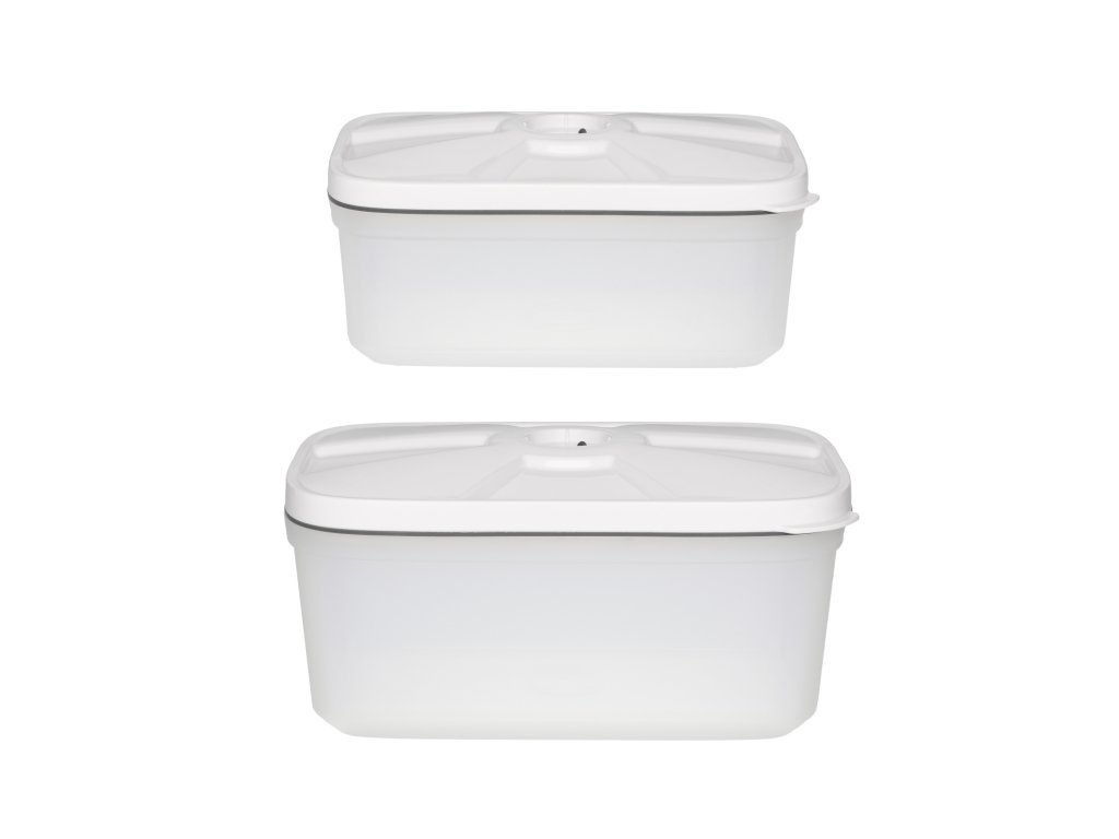 - Praktické vakuové nádoby: Sada dvou nádob o rozměrech 15 x 21 x 10 cm, ideálních pro uchovávání potravin. Díky vakuovému balení zůstávají potraviny čerstvé déle.