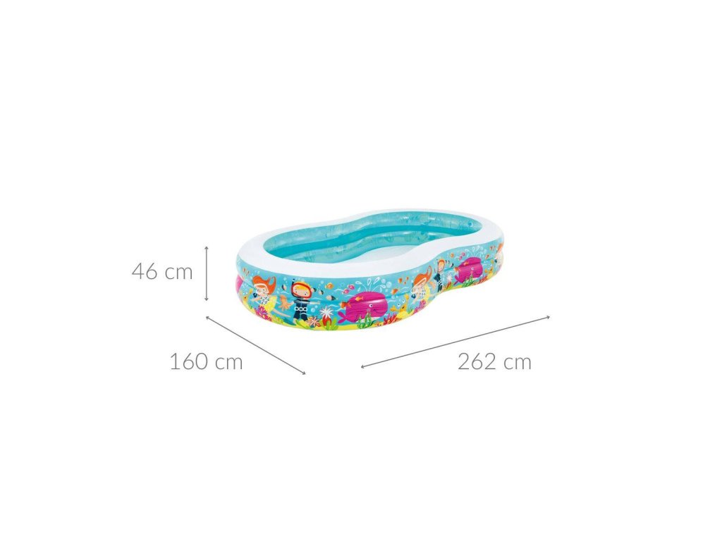 - Prostorná zábava pro celou rodinu: Bazén o rozměrech 262 x 160 x 46 cm je skvělý pro rodinný odpočinek a hraní ve vodě. Jeho kapacita 572 litrů poskytuje dostatek místa pro všechny členy rodiny, aby si mohli užívat vodní zábavu v horkých dnech.