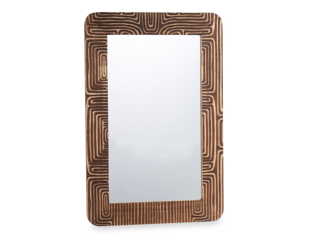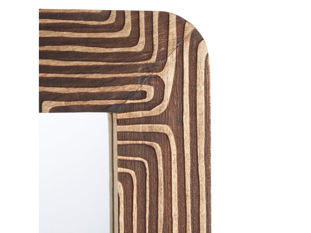 Nástěnné zrcadlo v mangovém dřevěném rámu LINES&CURVES, 60 x 90 cm, hnědé
