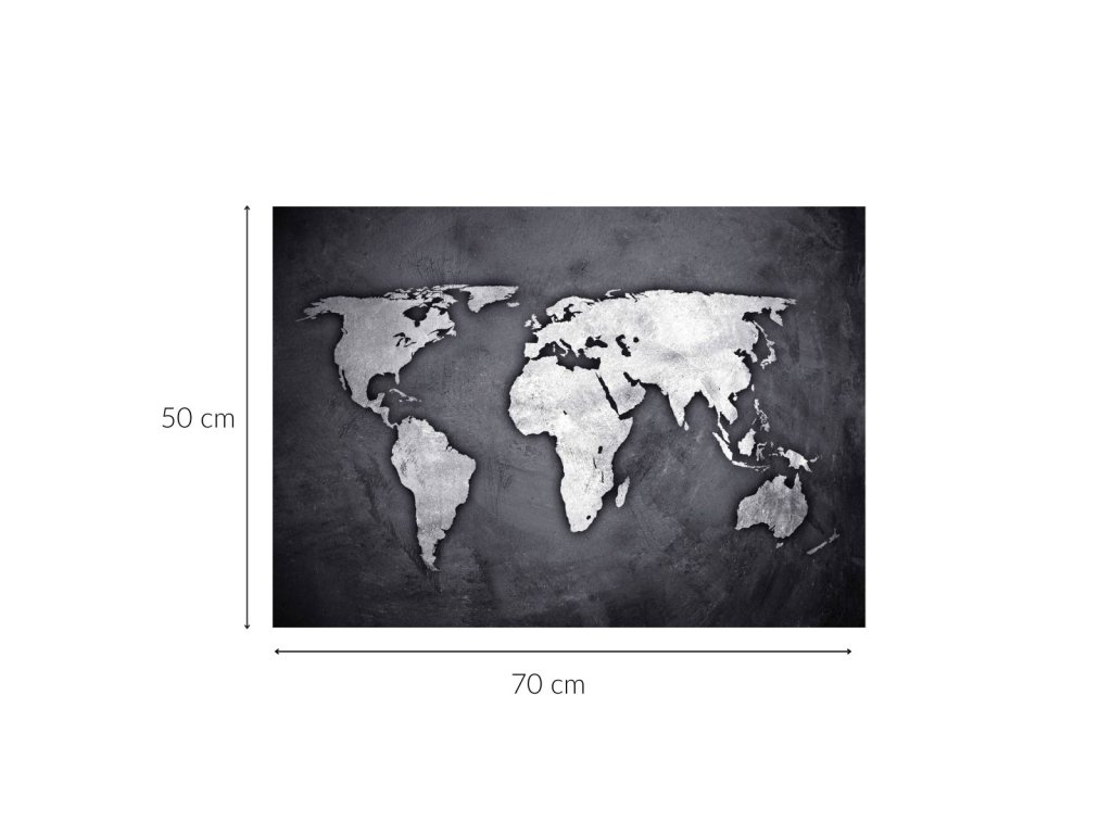 Samolepka na zeď s mapou světa, 50 x 70 cm, stříbro-černá