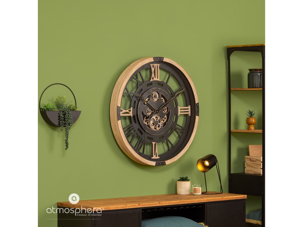 - Elegantní design: Velké nástěnné hodiny KENT o průměru 80 cm s viditelným mechanismem, které přitahují pozornost a dodávají interiéru charakter.