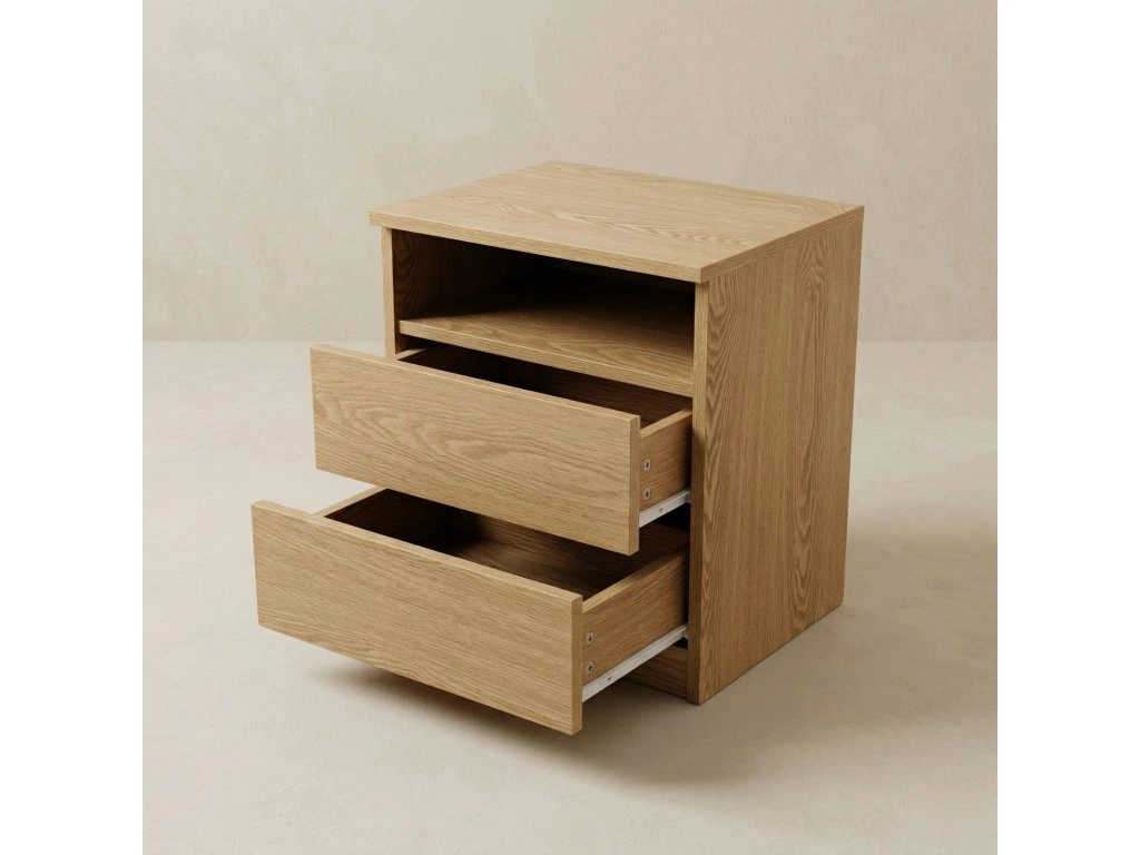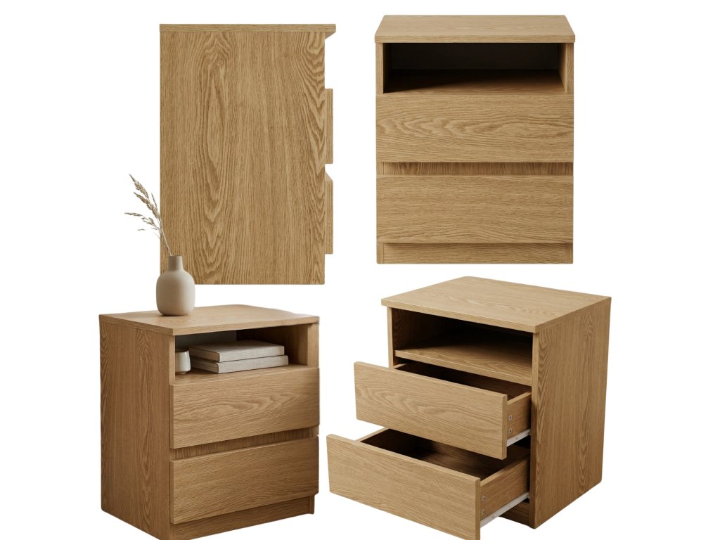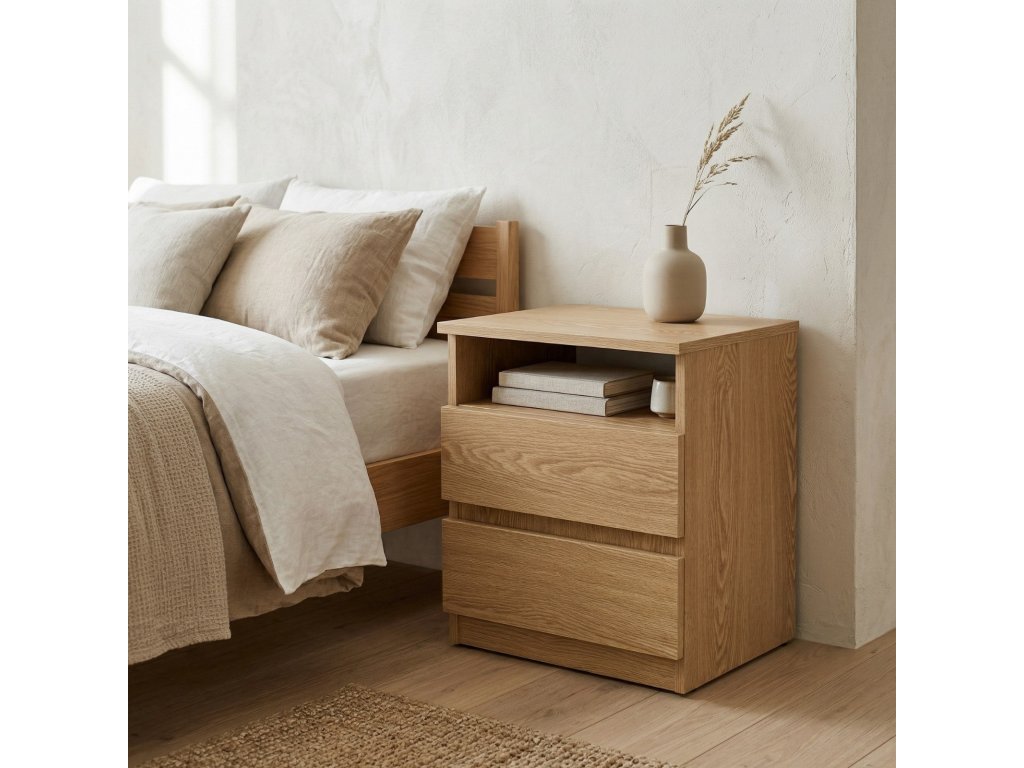 Noční stolek AURI se zásuvkami a policí - praktický a trvanlivý do ložnice